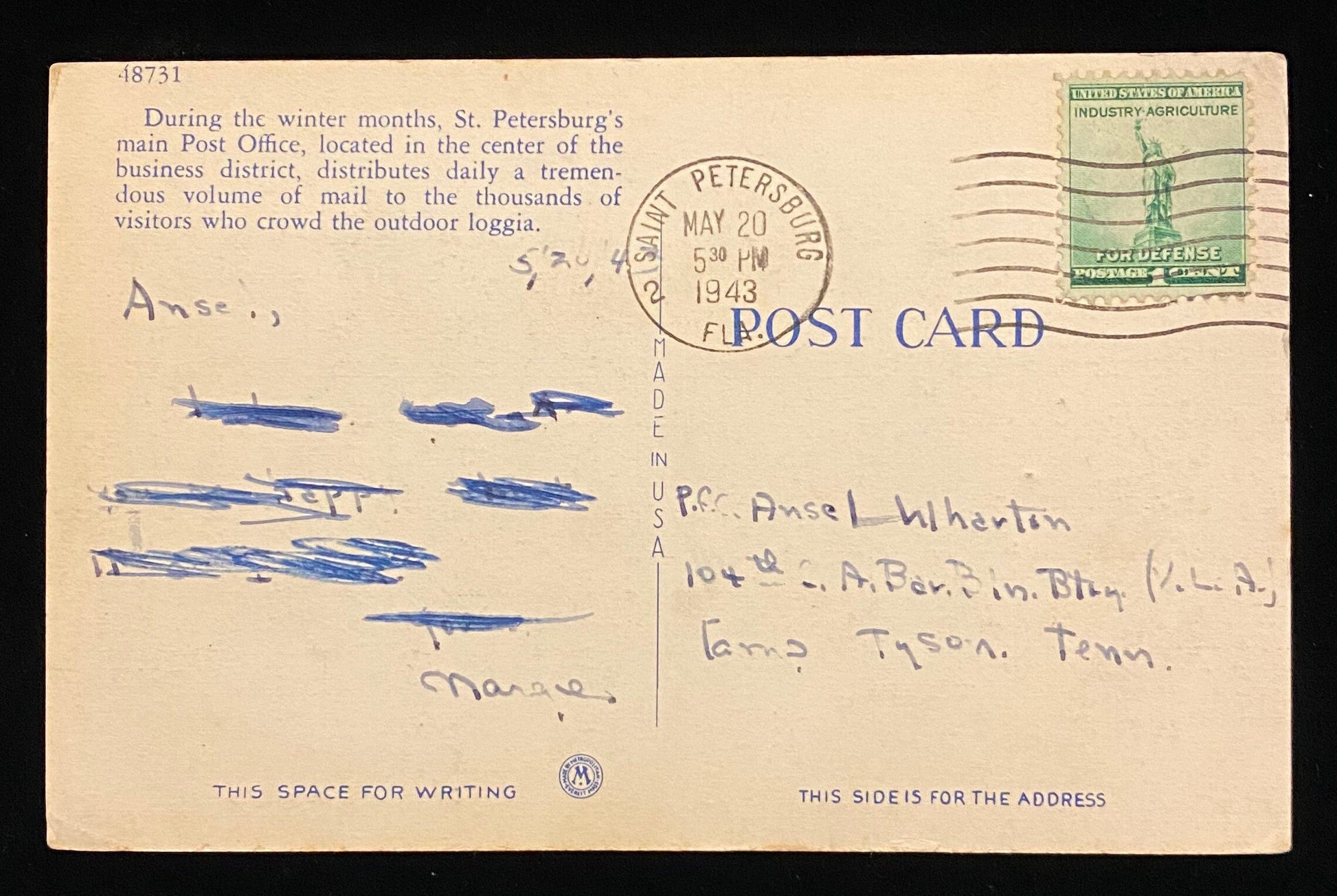 Open Air Post Office, St. Petersburg, Florida - 1940s Linen Postcard