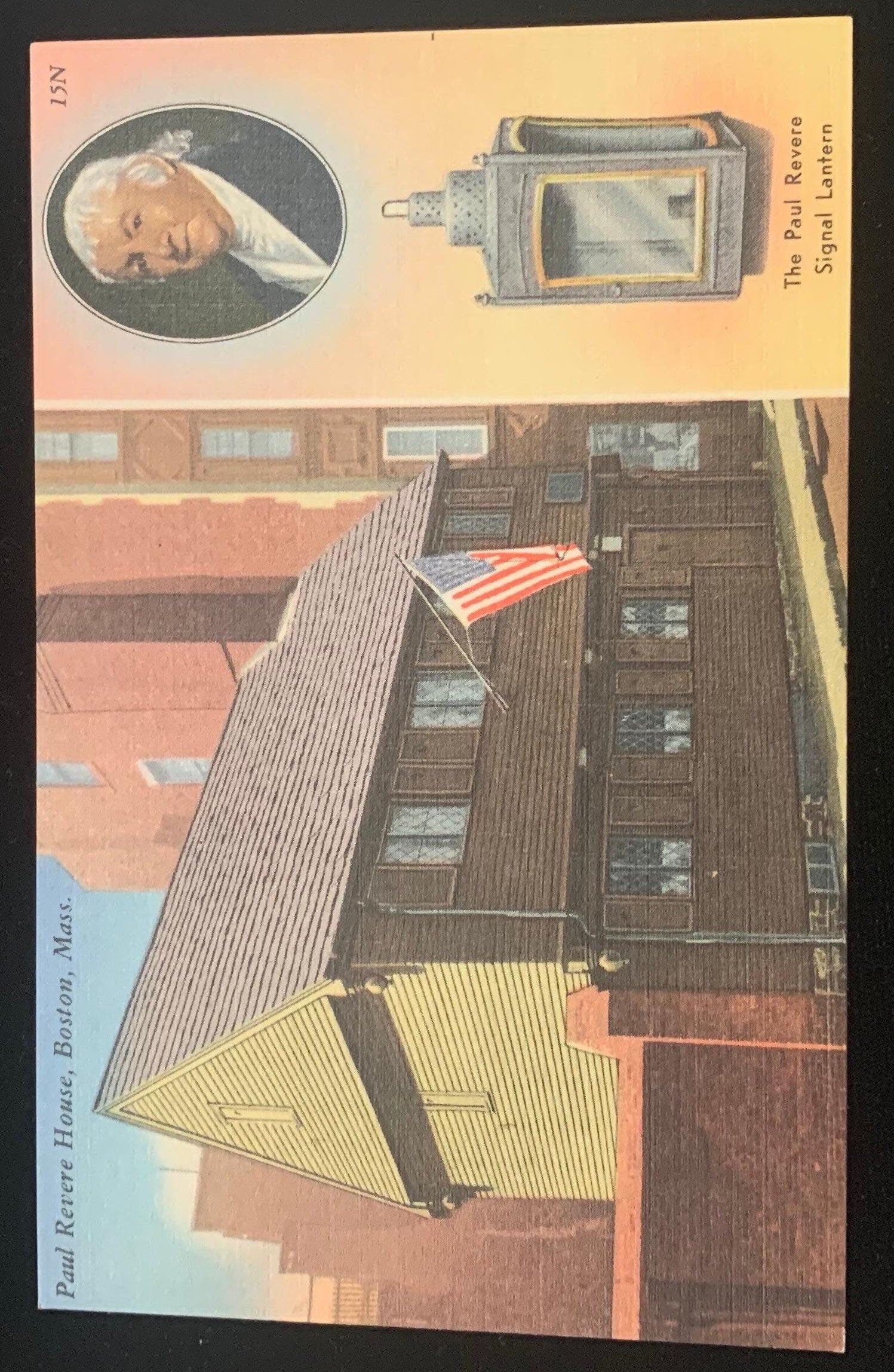 Paul Revere House - Boston Massachusetts - 1940s Linen Postcard