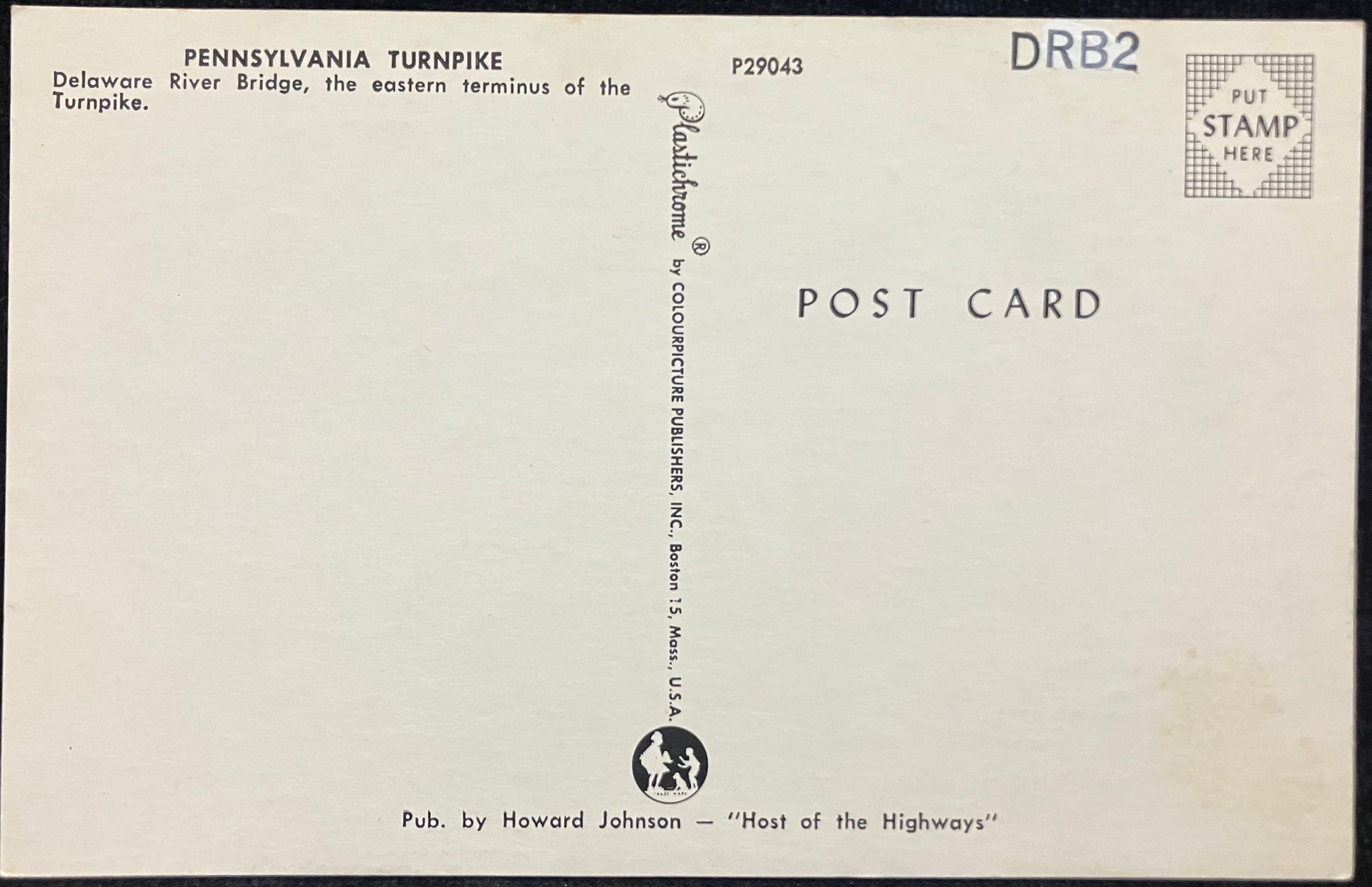 On back: Pennsylvania Turnpike Delaware River Bridge, the eastern terminus of the Turnpike.