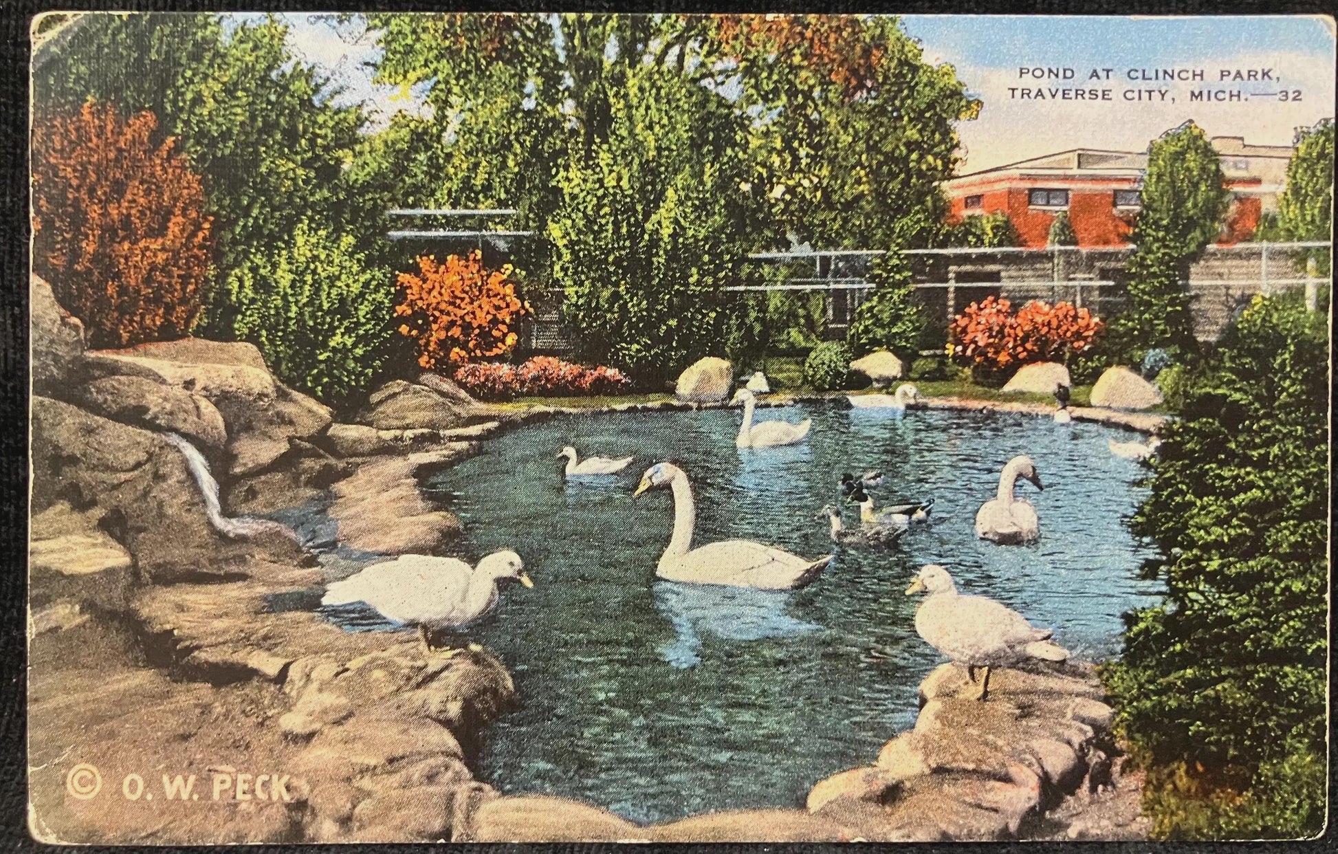 Pond at Clinch Park, Traverse City, Michigan - Copyright: O. W. Peck - Vintage Park Postcard