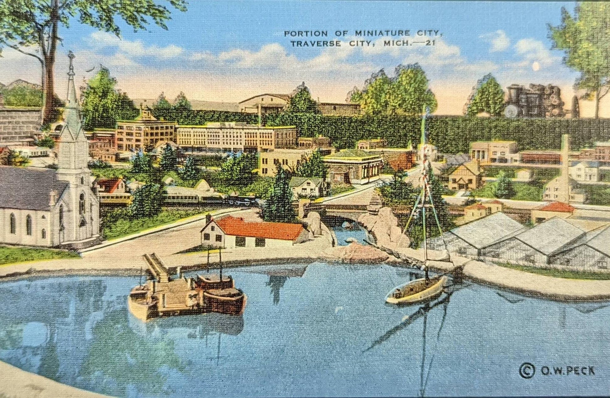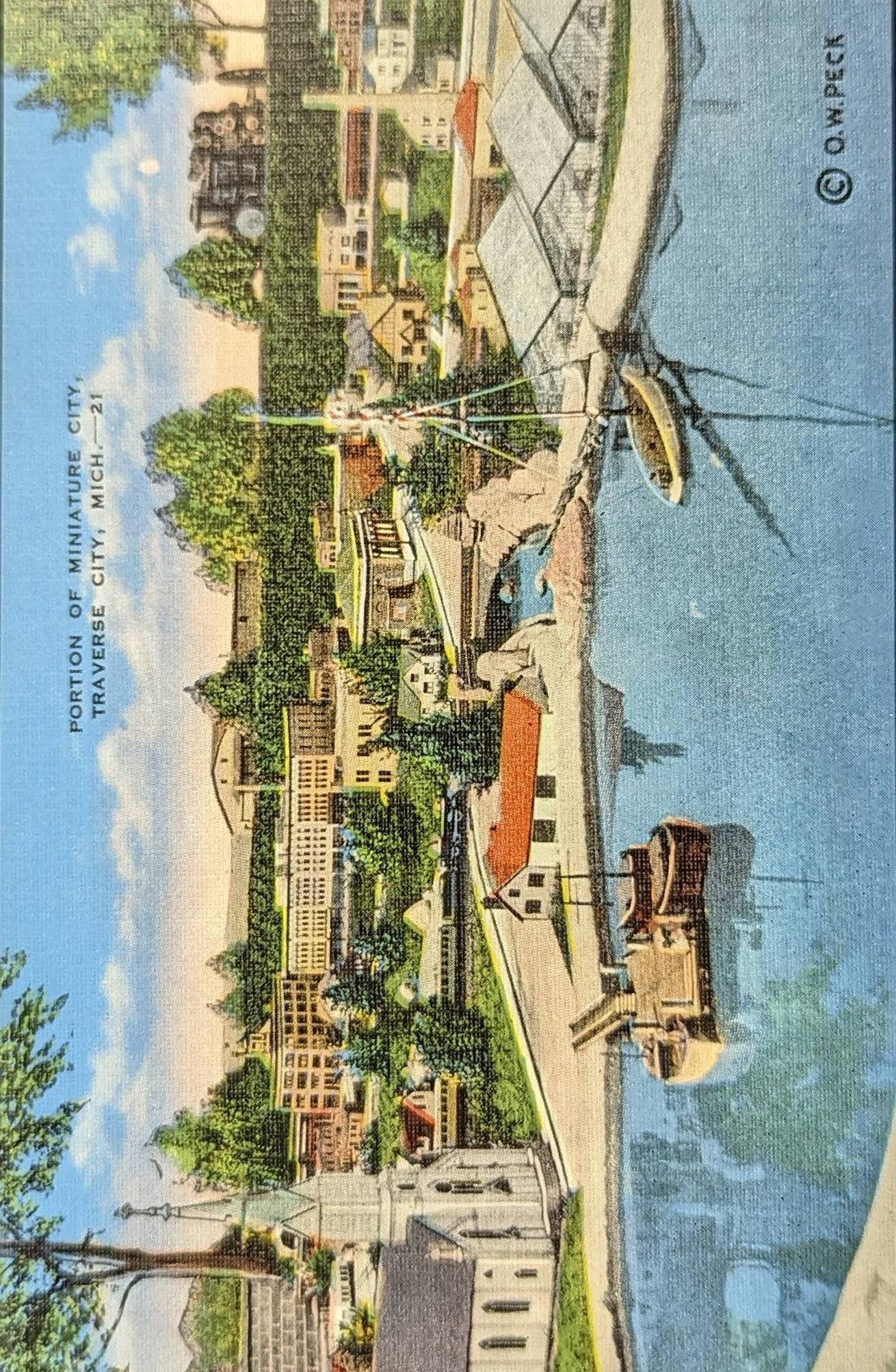 Portion of Miniature City - Traverse City, Michigan - 1940s Linen Postcard