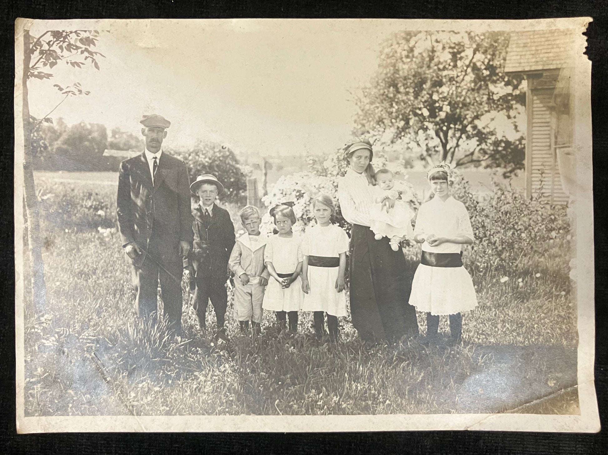 Early 20th Century Farm Family with 6 Children in Photo - American Farm Life Photography