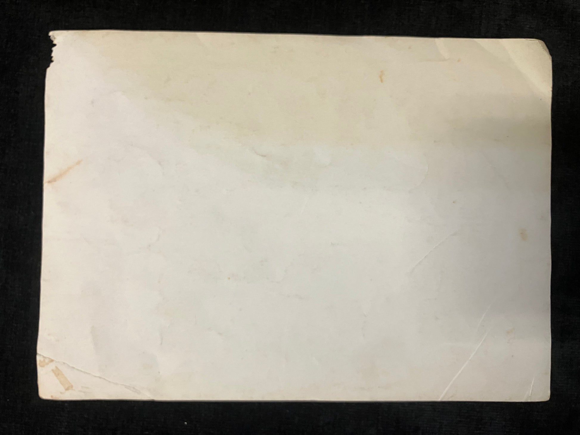 Condition: Worn corners, with some discoloration and creasing on the back. Torn top right corner