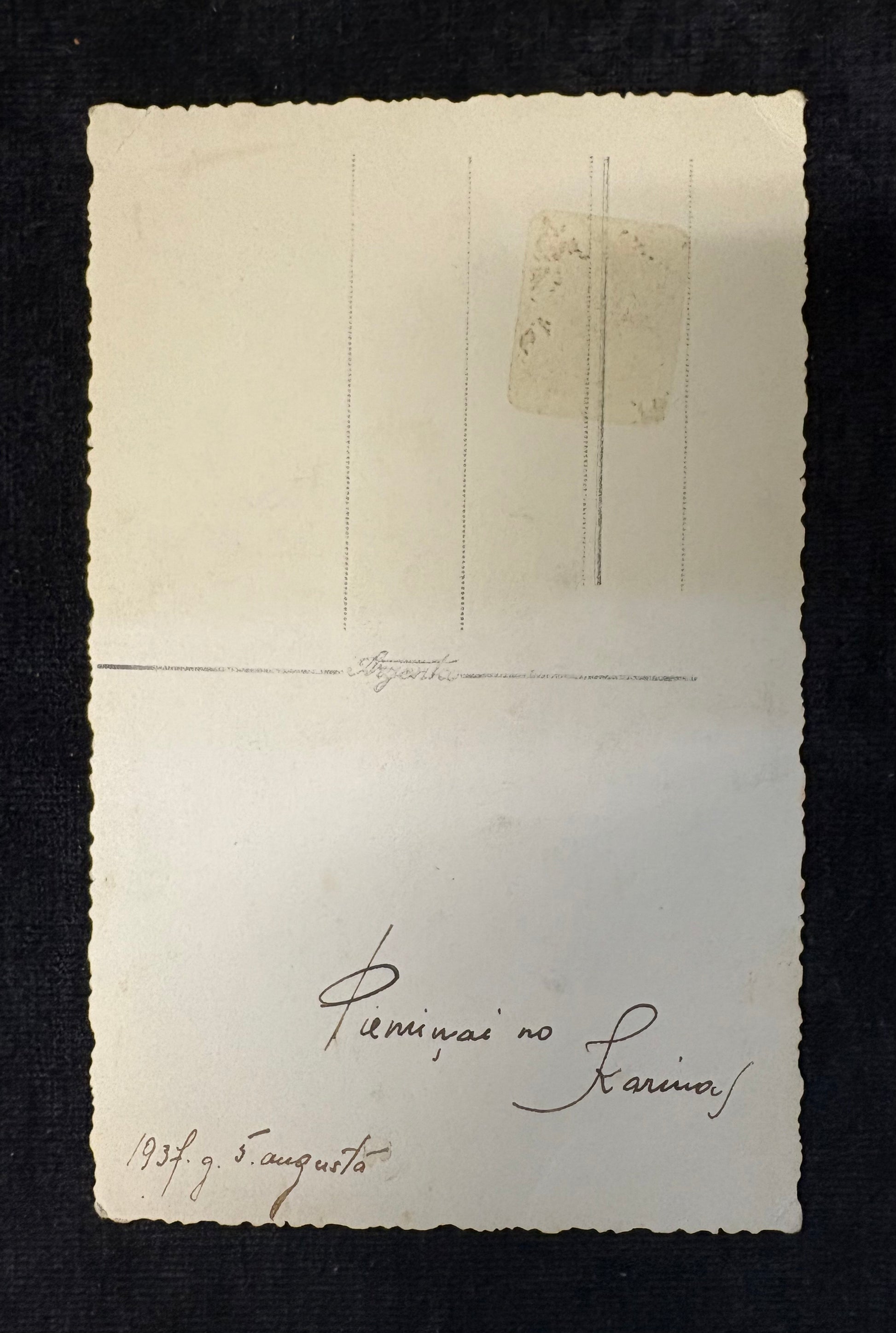 This postcard is dated 1937.g. 5 augustā, meaning it was mailed in the brief period after Latvian Independence (1920) and before Soviet and Nazi occupation (1940).