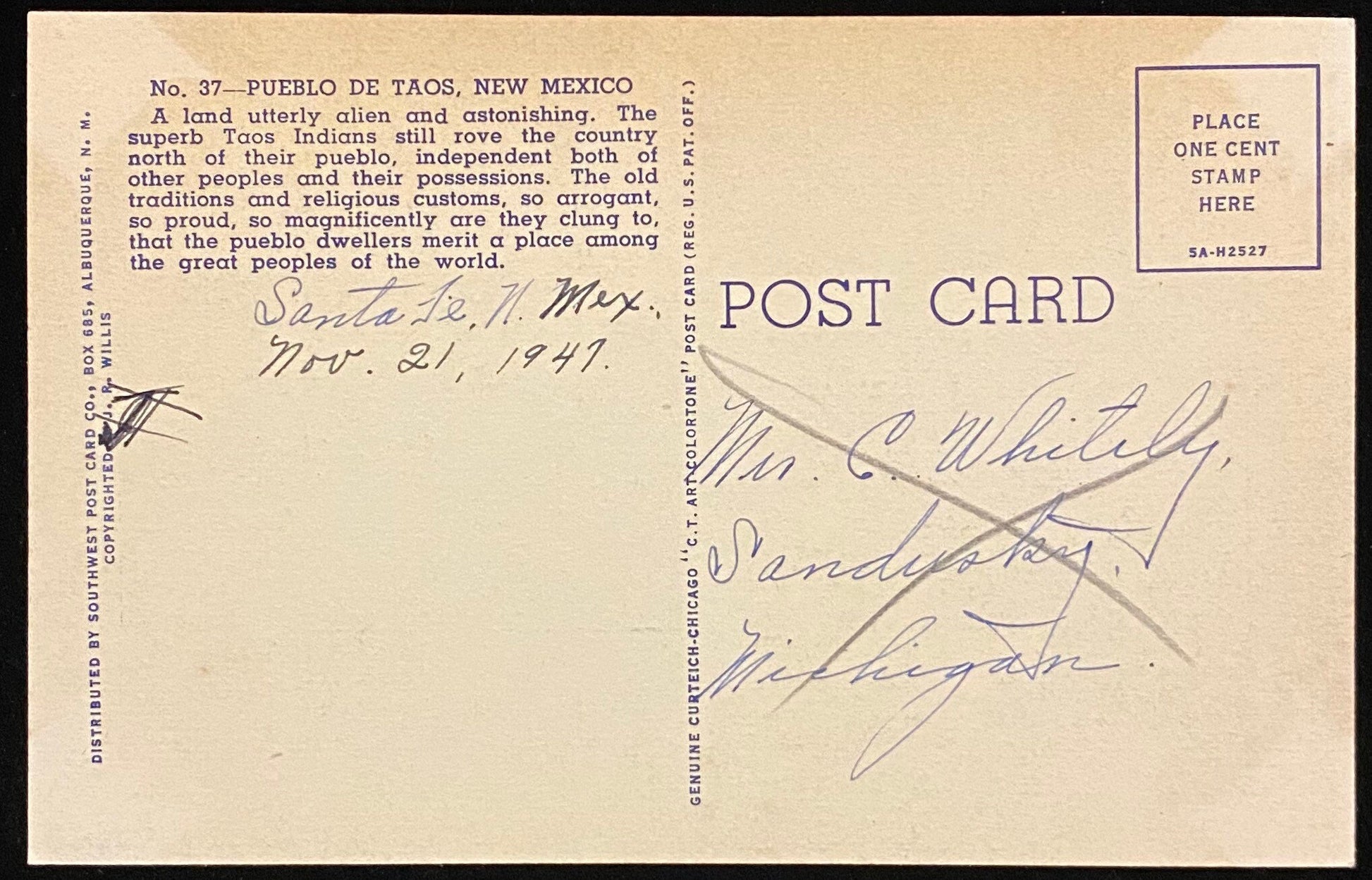 "A land utterly alien and astonishing. The superb Taos Indians still rove the country north of their pueblo, independent both of other peoples and their possessions. The old traditions and religious customs, so arrogant, so proud, so magnificently are they clung to, that the pueblo dwellers merit a place among the great peoples of the world."