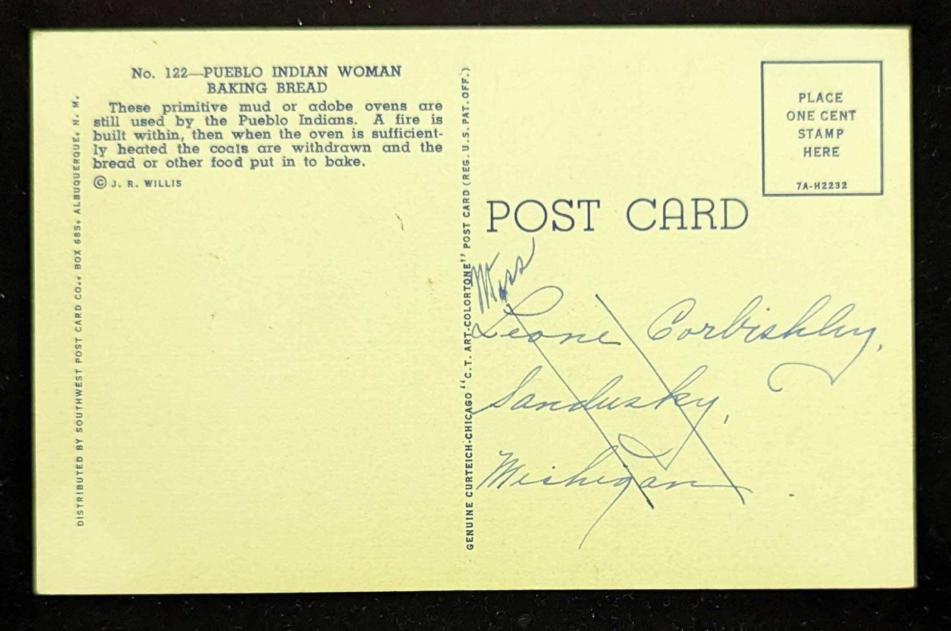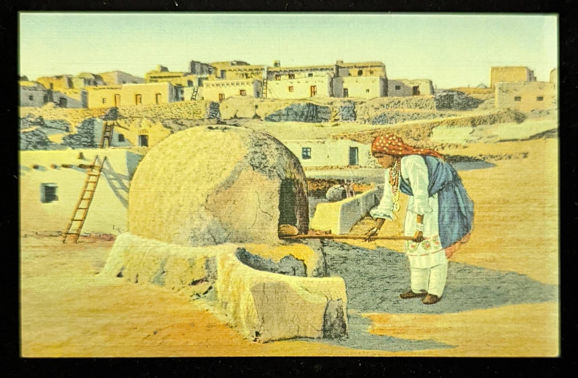 Pueblo Indian Woman Baking Bread, New Mexico - Vintage Postcard