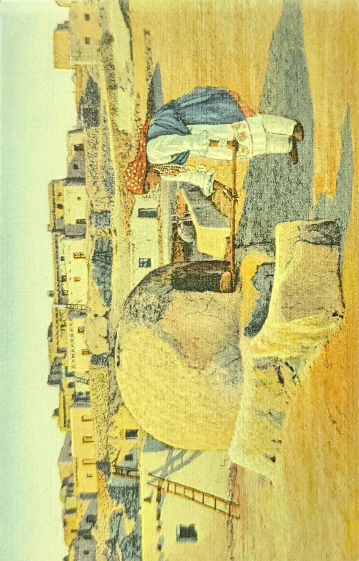 Back Information: These primitive mud or adobe ovens are still used by the Pueblo Indians. A fire is built within, then when the oven is sufficiently heated the coals are withdrawn and the bread or other food put in to bake
