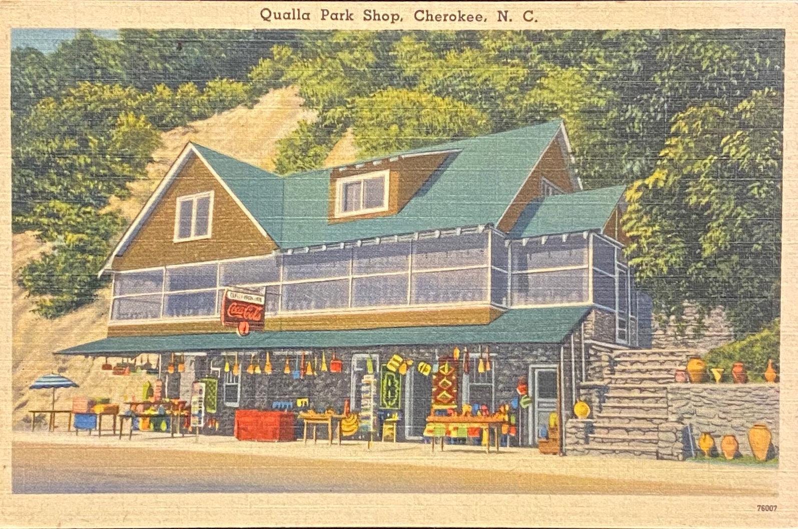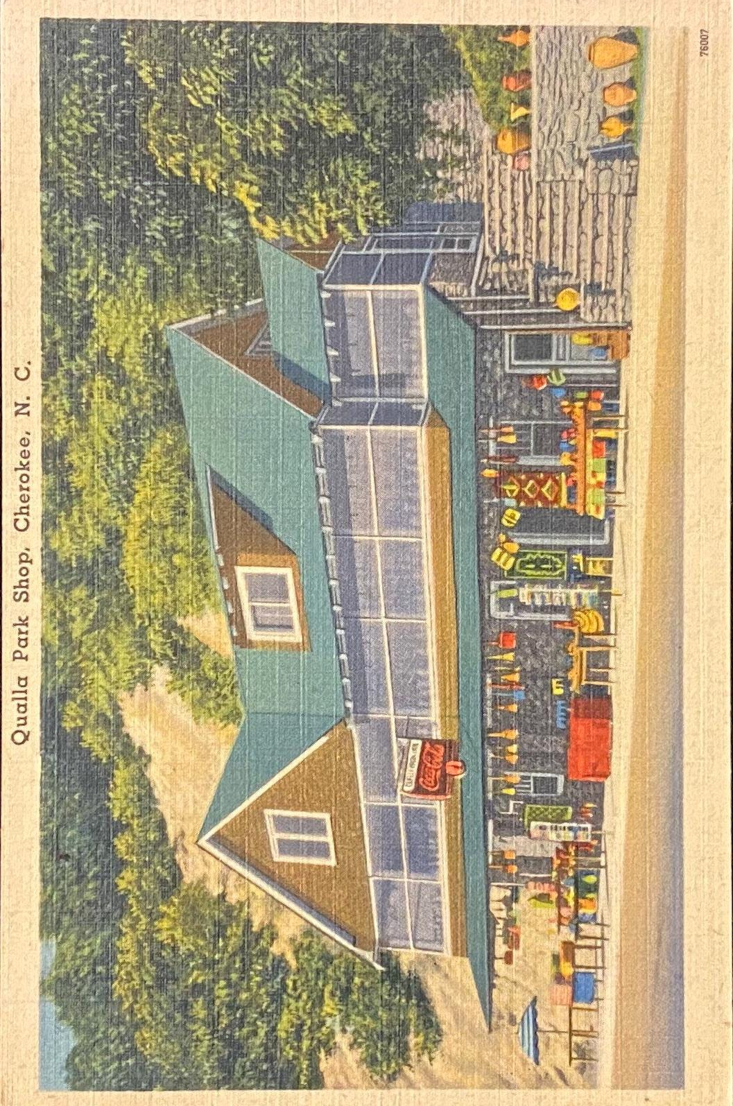Qualla Park Shop - Cherokee, North Carolina - 1940s Linen Postcard