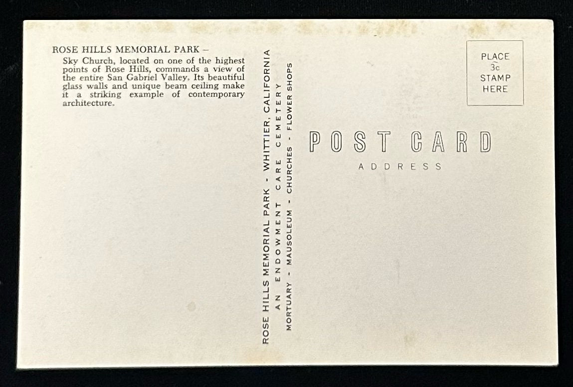 Rose Hills Memorial Park Sky Church, San Gabriel Valley, California - Vintage Postcard