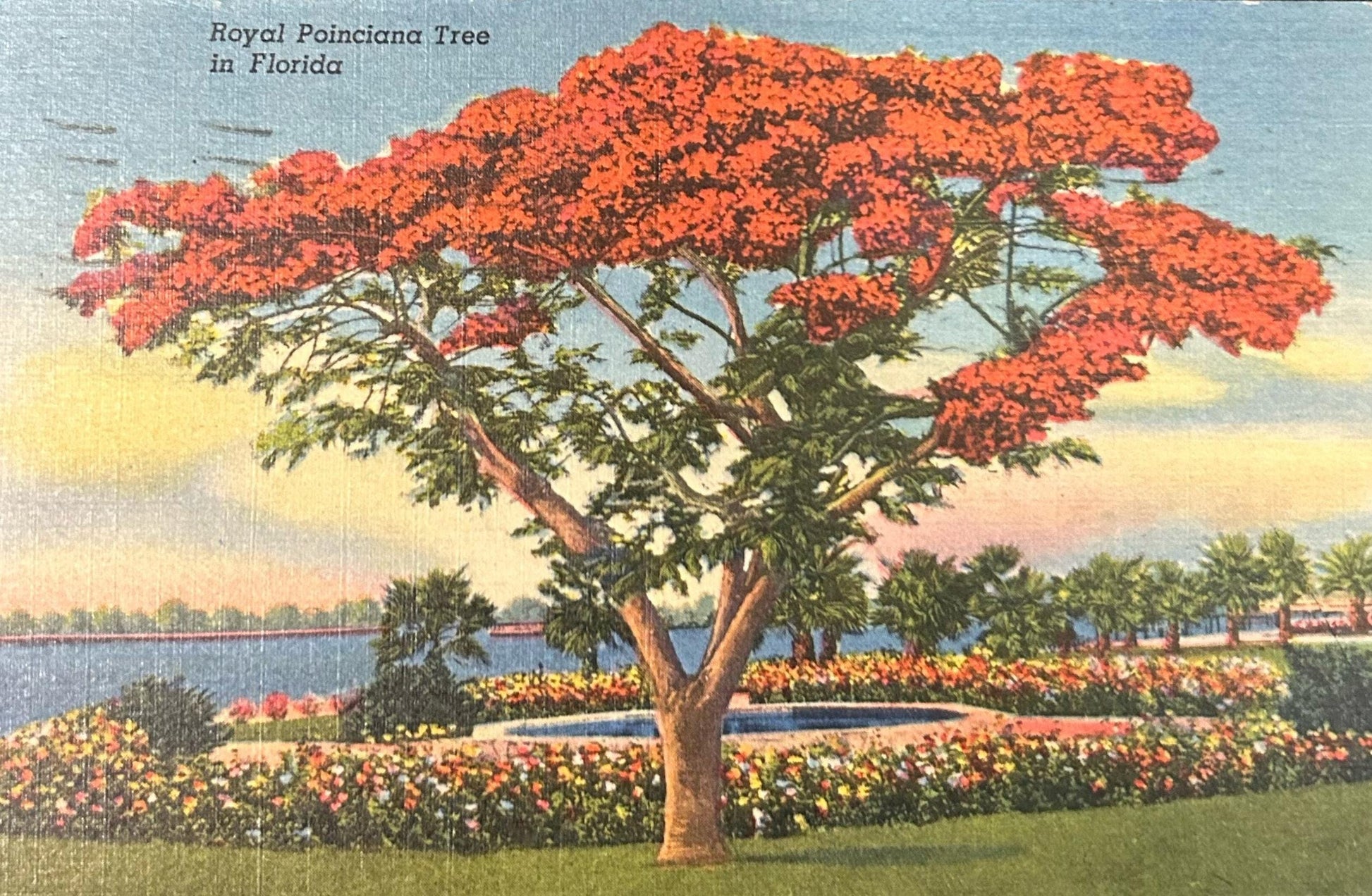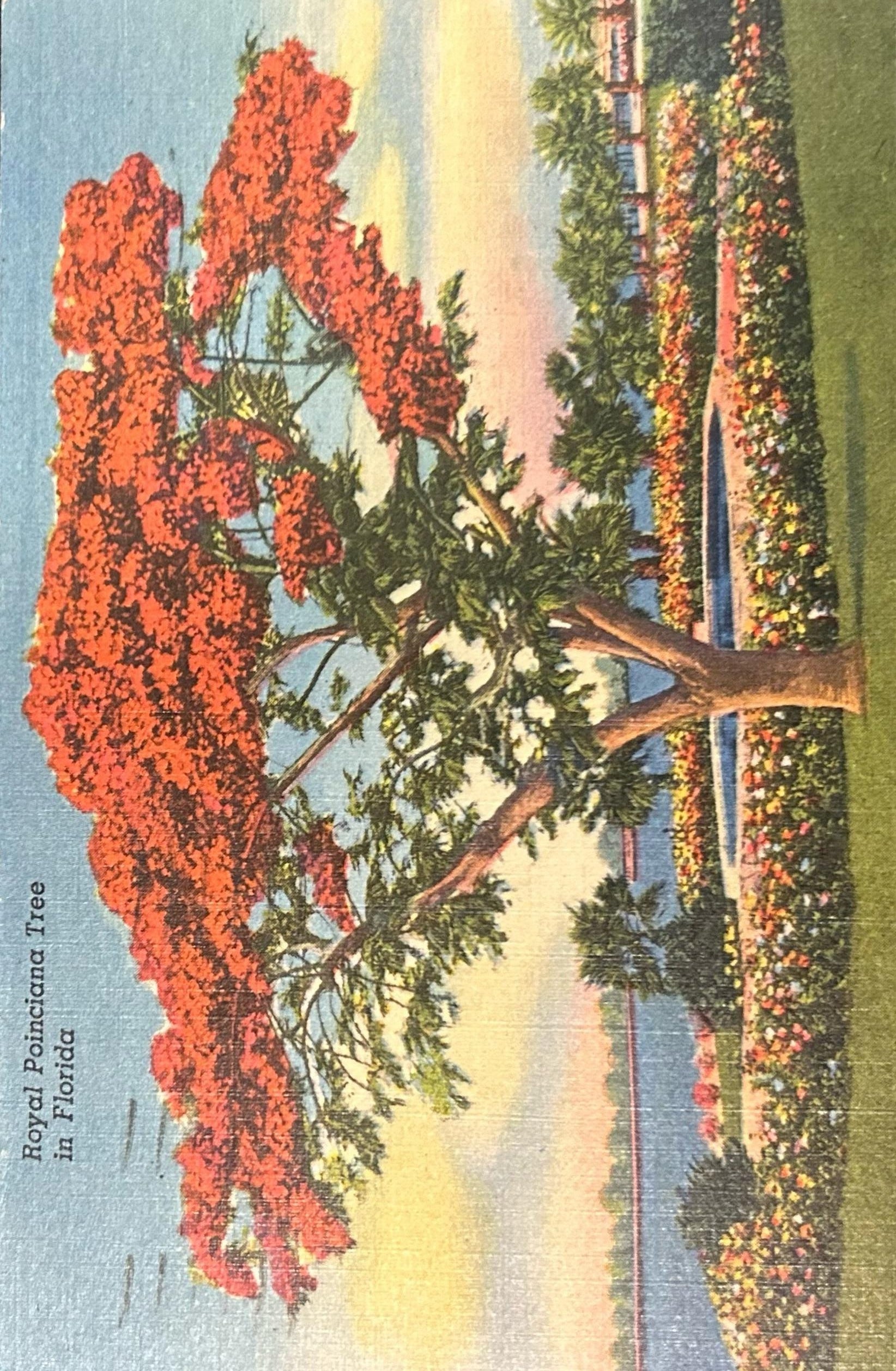 Royal Poinciana Tree in Florida - Linen Postcard