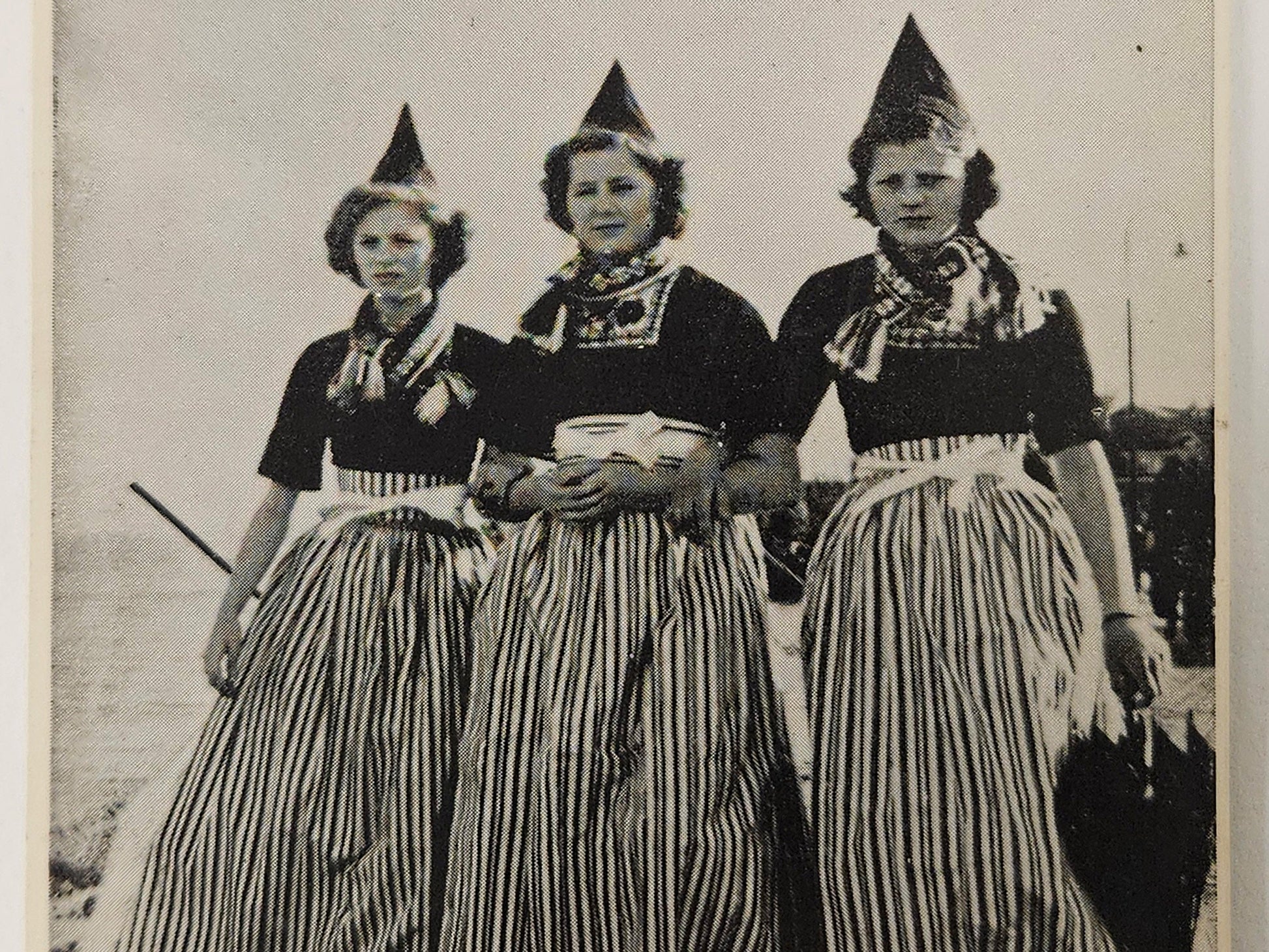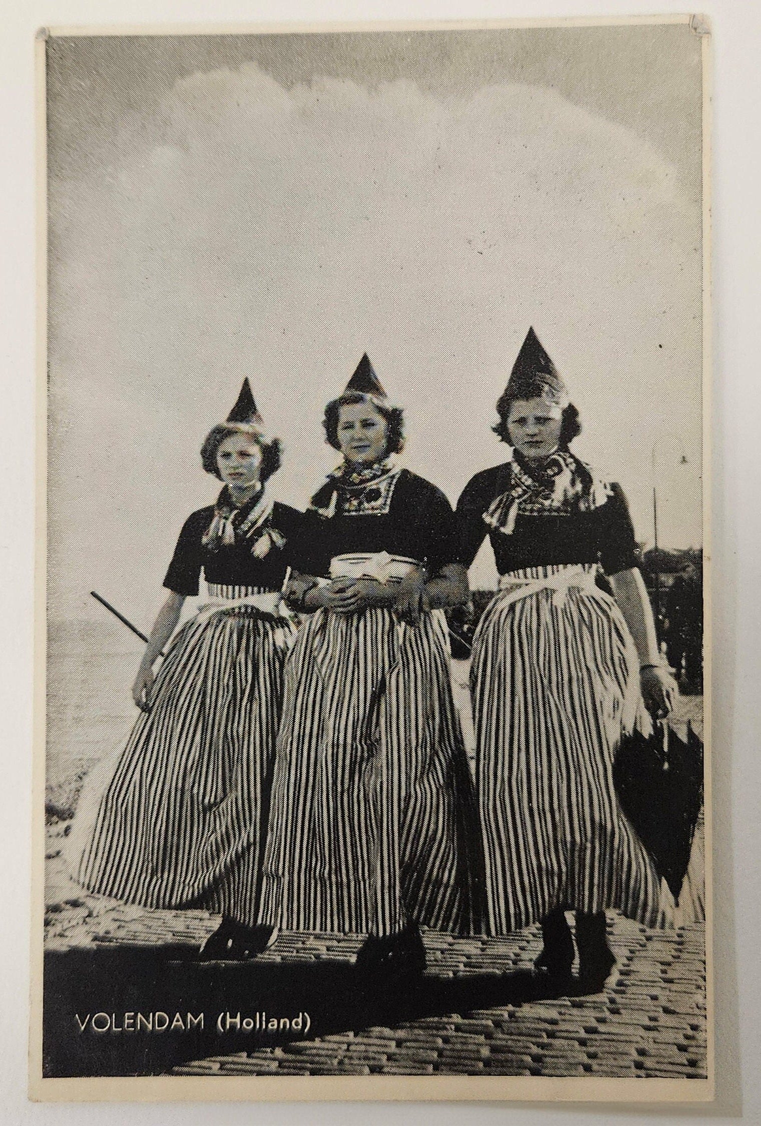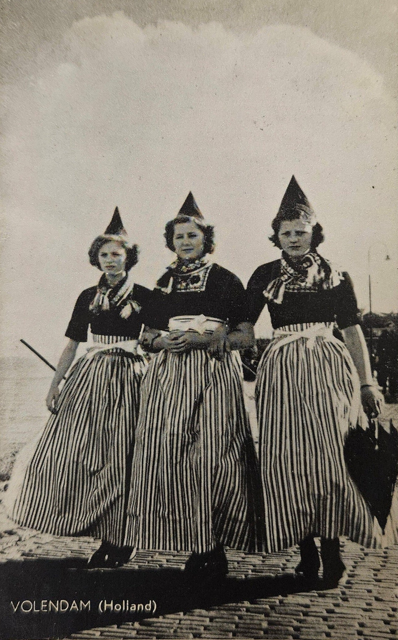 RPPC - 1960s Volendam Holland Postcard - Three Women In Cultural Folk Costume On Pier- Three Smiling Dutch women in Traditional Outfits