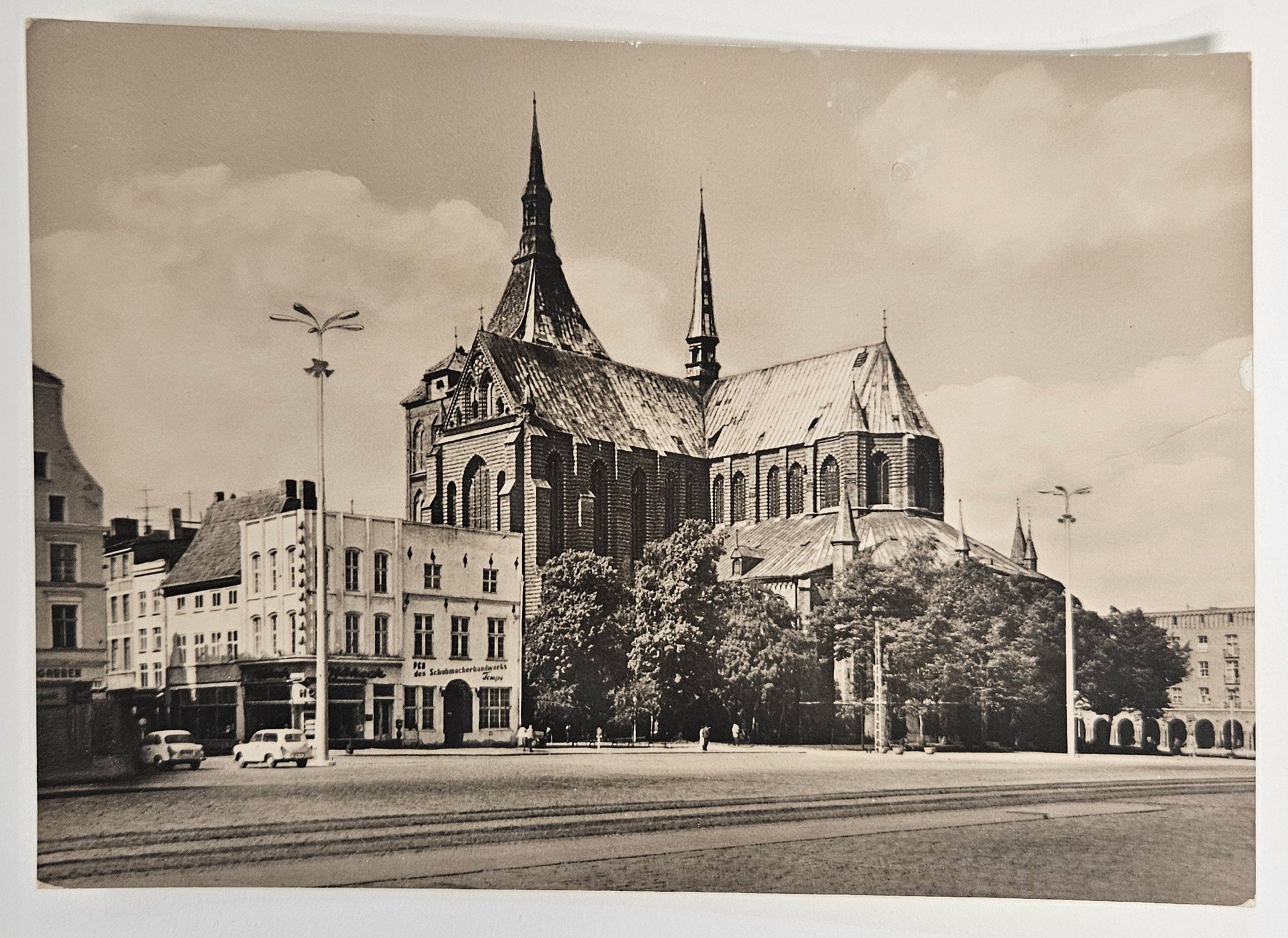RPPC - 1961 German Church Rostock Ernst-Thalmann-Platz Marienkirche Vintage Real Photo Postcard