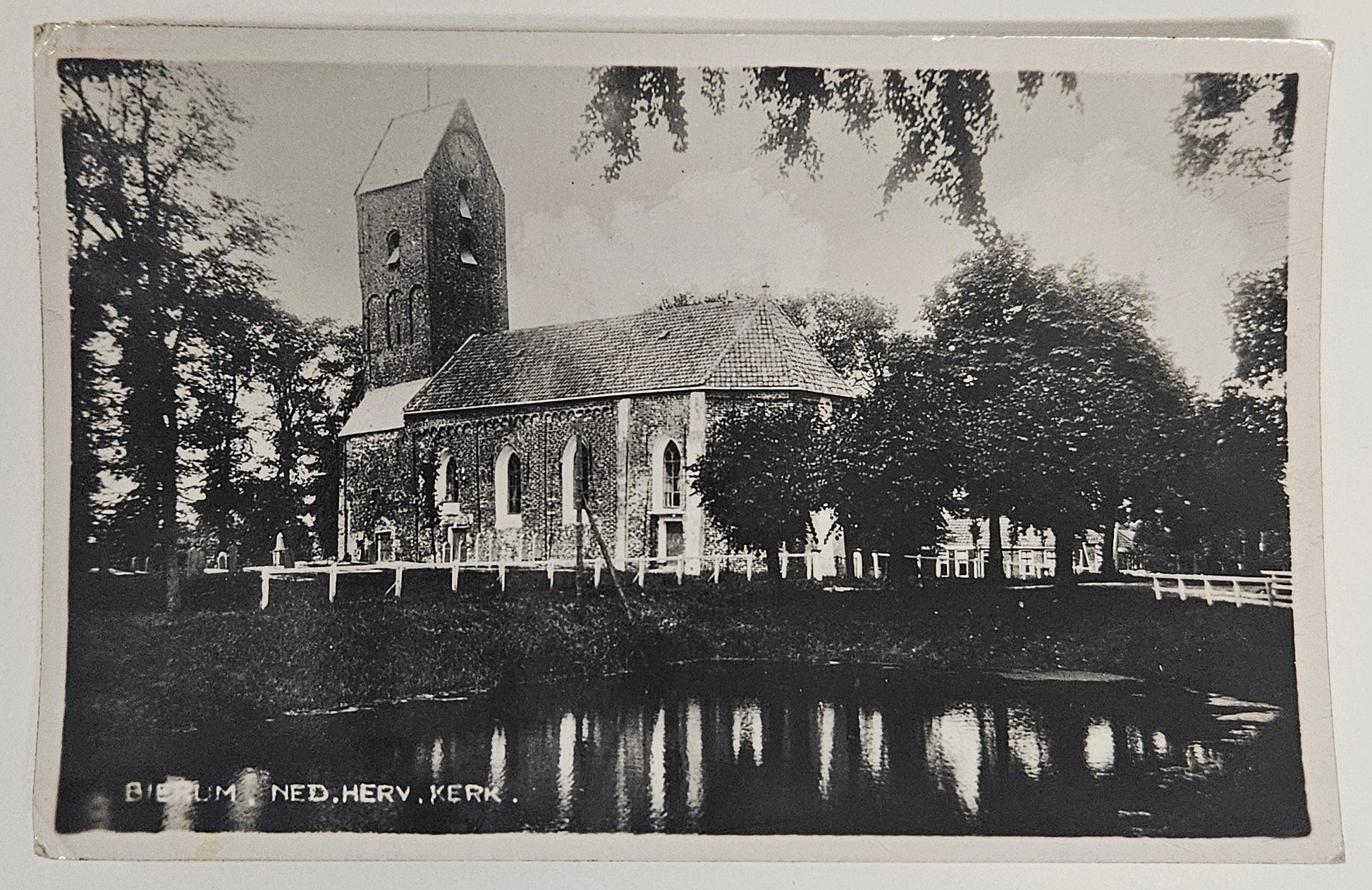 RPPC - Dutch Netherlands Church Sint Margaretakerk Drenthe Bierum Ned. Herv. Kerk. - 1937 Real Photo Postcard - looks like professional photo