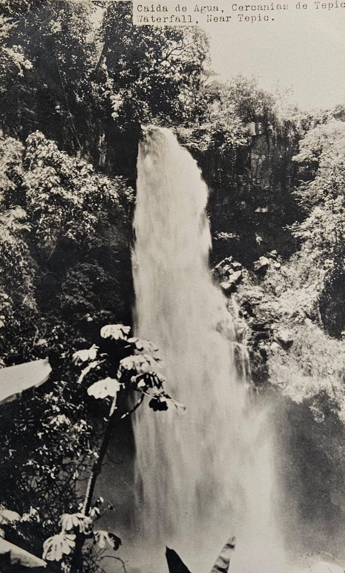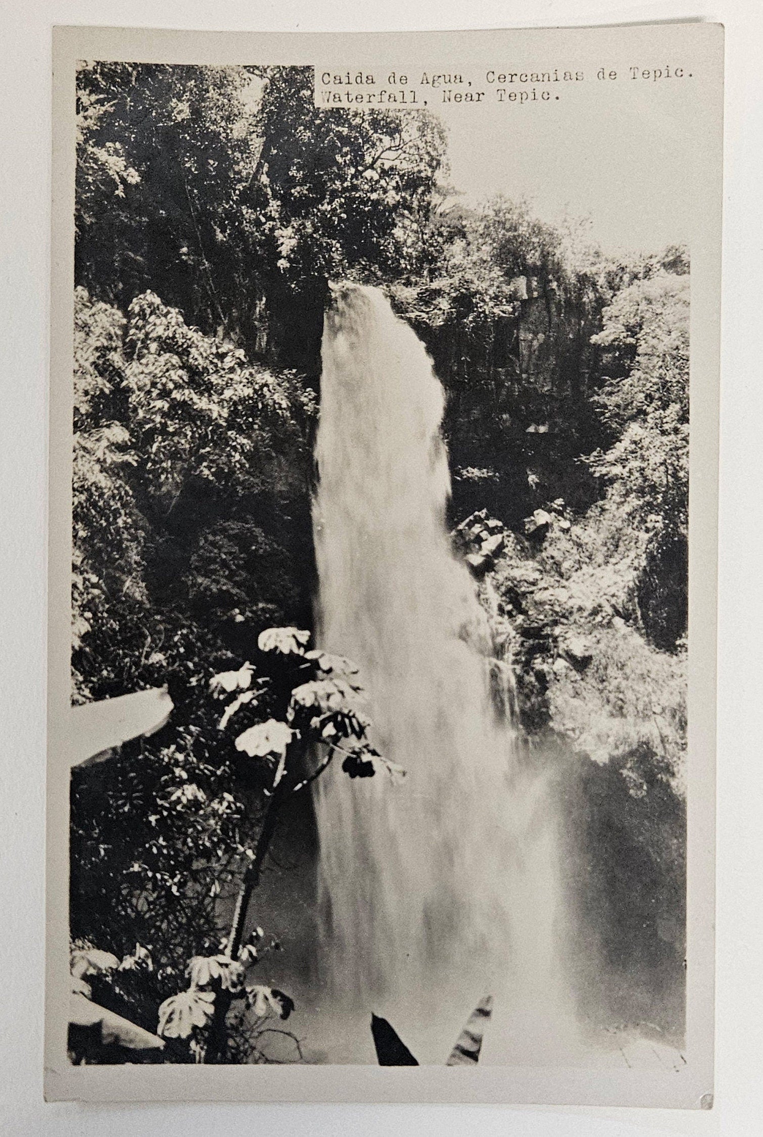 RPPC - January, 1925 - Tepic Mexico Caida De Agua Waterfall Rainforest - Real Photo Postcard - Black&white Photo of Tepic Mexico Rainforest.