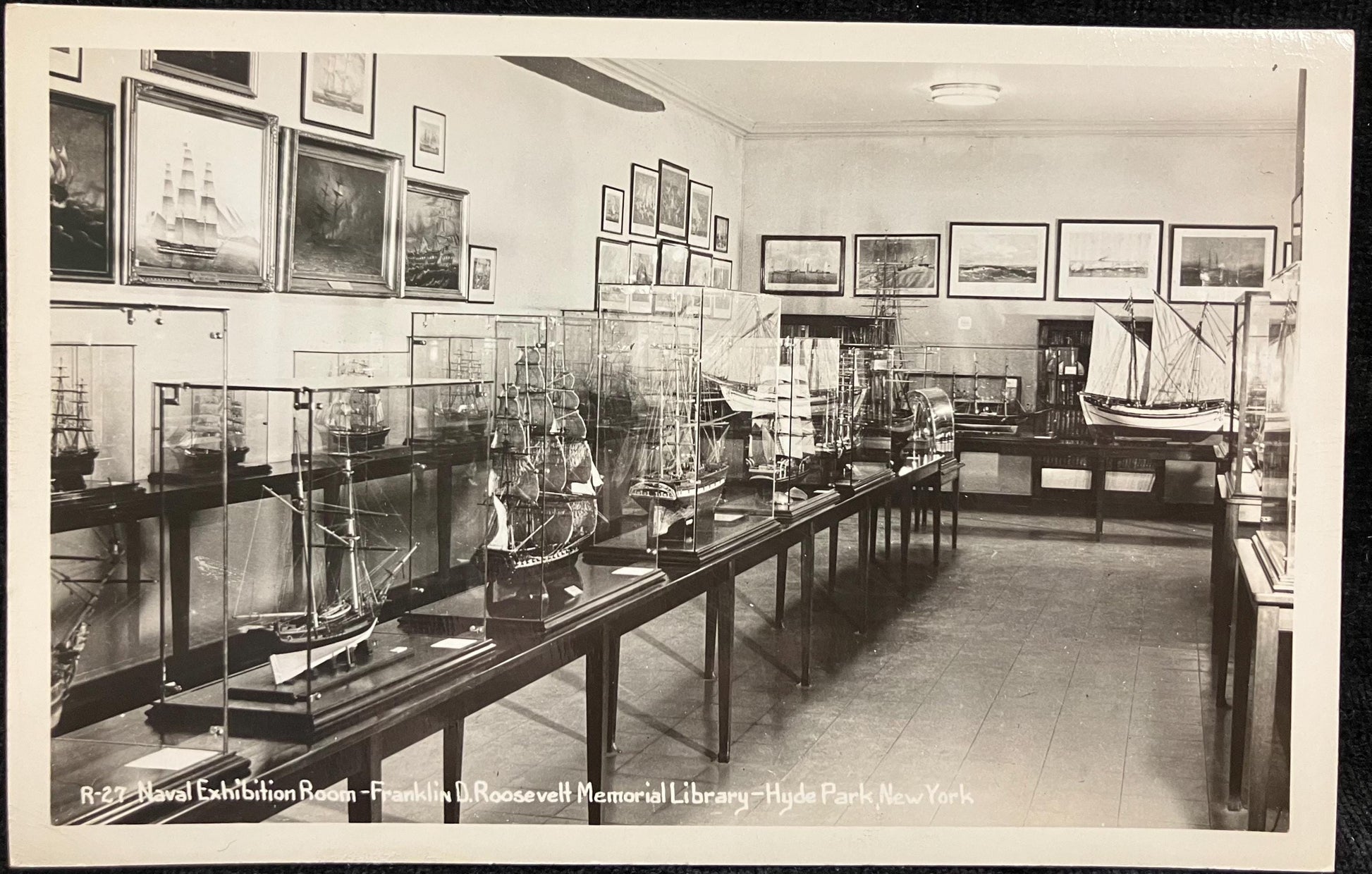 RPPC - Naval Exhibition Room - Franklin D. Roosevelt Memorial Library - Hyde Park, New York - Black and White Photo Series