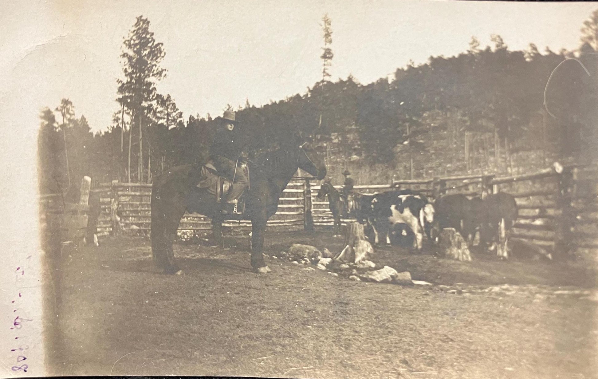 RPPC - Working Cattle with Horses on Ranch - Taken: 1908 - Cowboy Life postcard - Roping and Branding Calves - looks like in the Dakotas