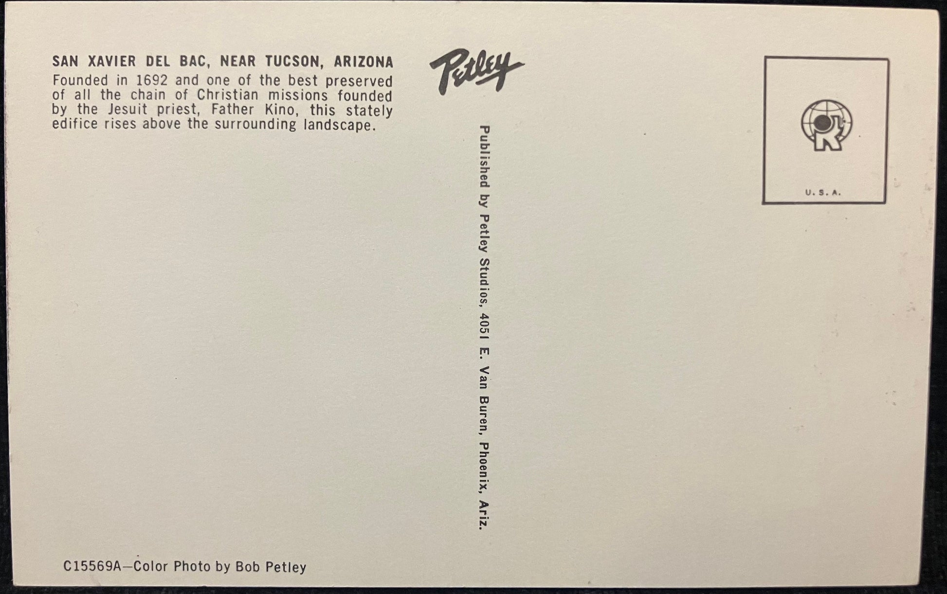 On front: A photo of San Xavier Del Bac in Arizona