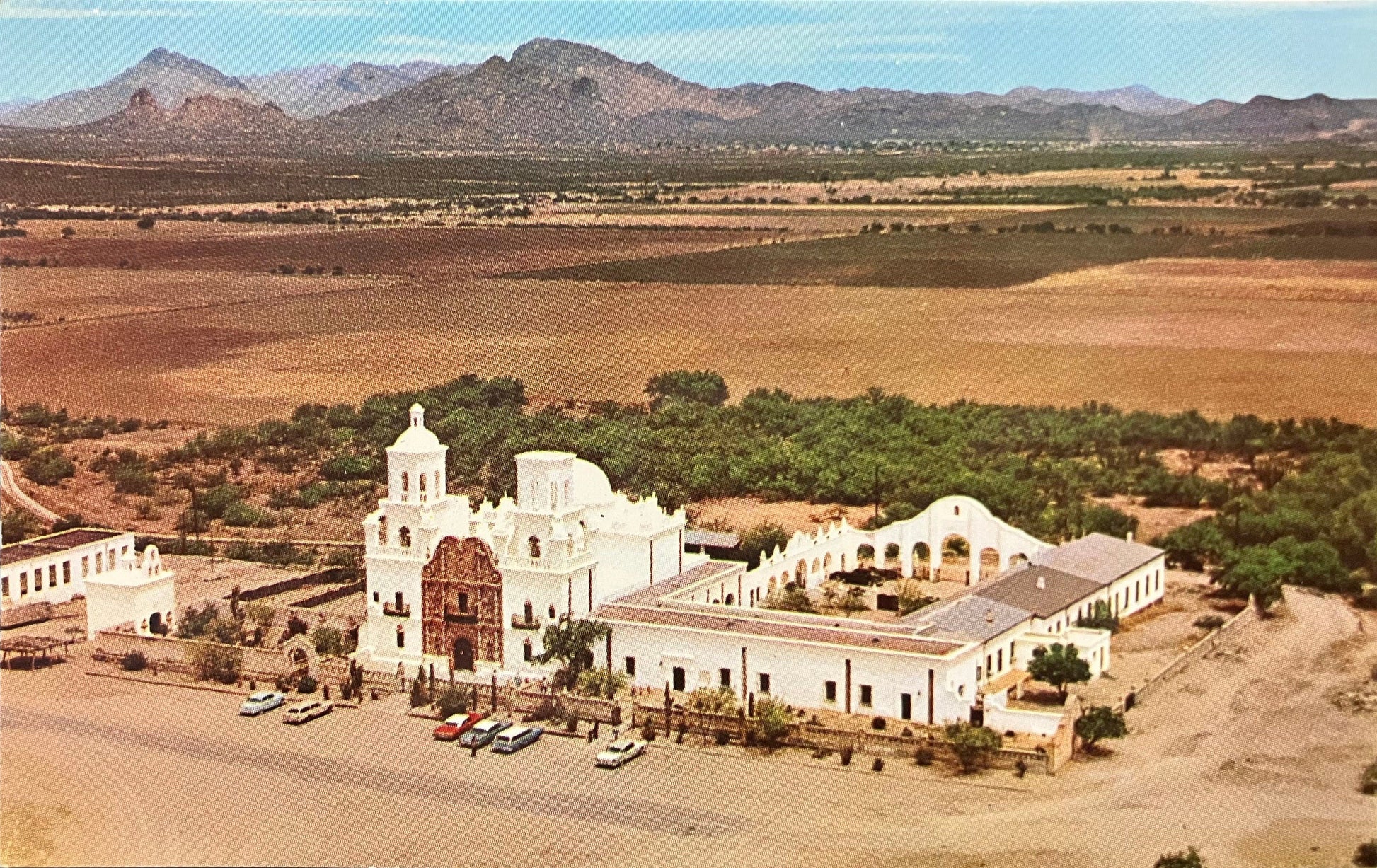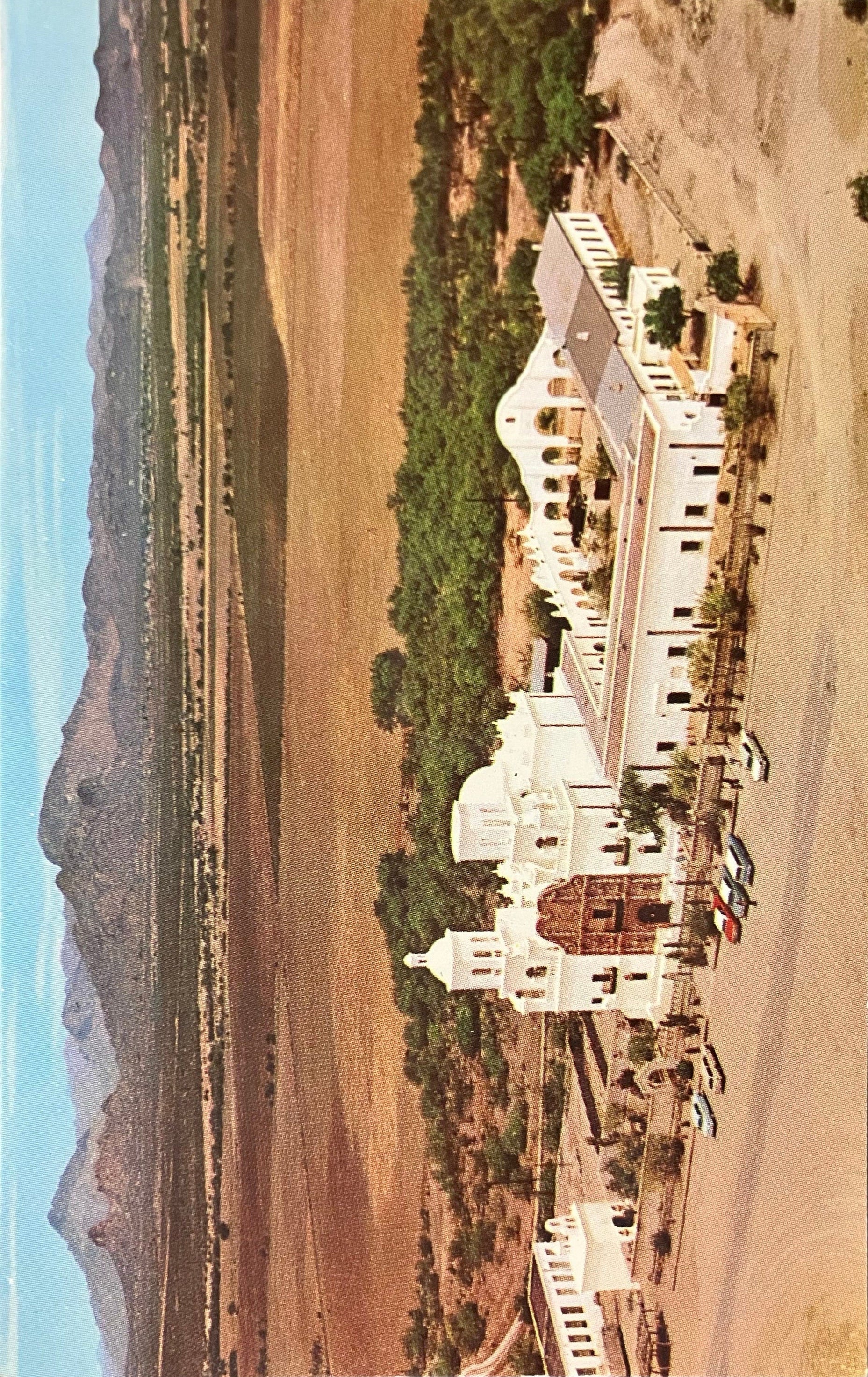 On back: SAN XAVIER DEL BAC, NEAR TUSCON, ARIZONA - Founded in 1692 and one of the best preserved of all the chain of Christian missions founded by the Jesuit priest, Father King, this stately edifice rises above the surrounding landscape