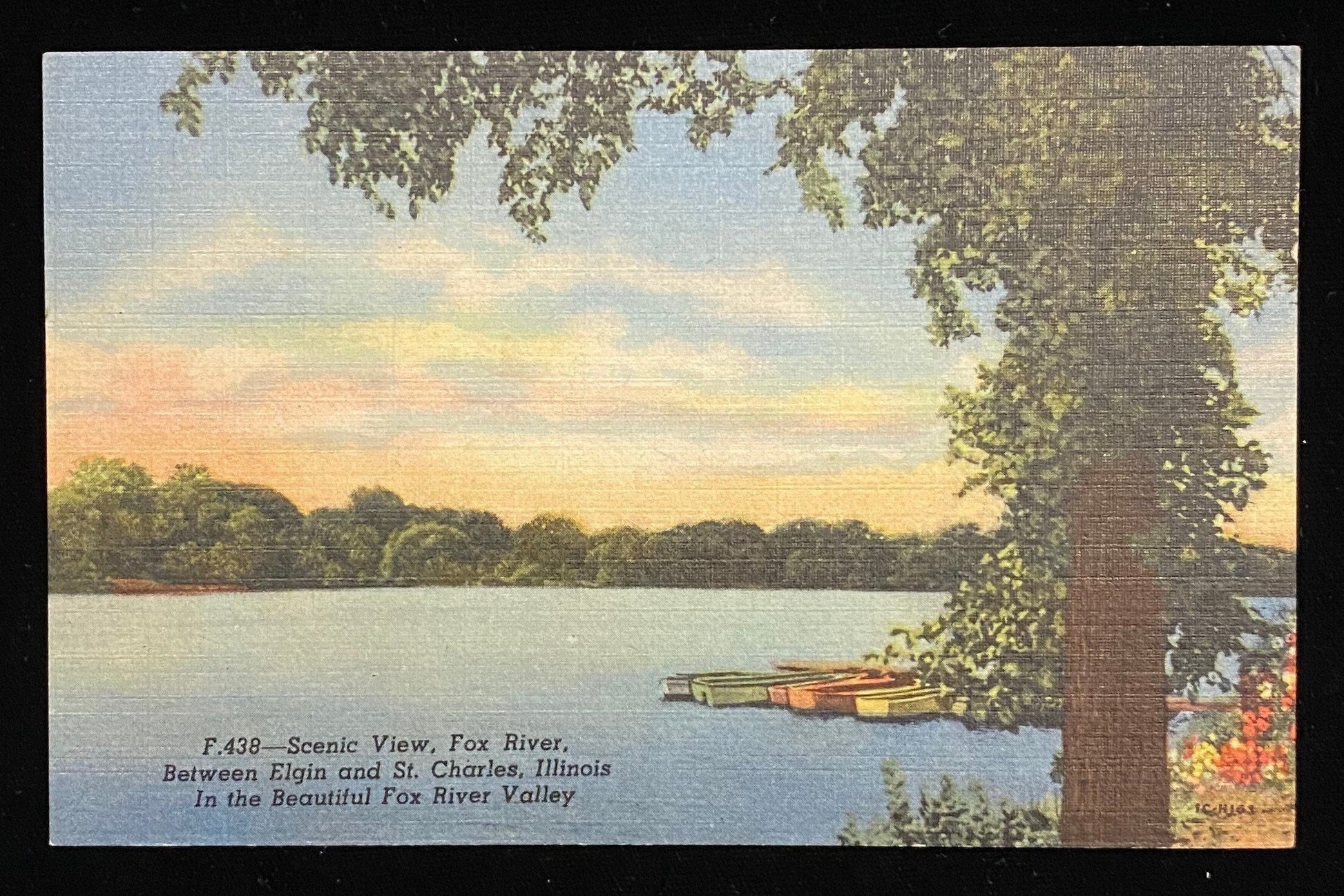 Scenic View - Fox River, Between Elgin and St. Charles, Illinois - In the Beautiful Fox River Valley - 1951 Linen Postcard