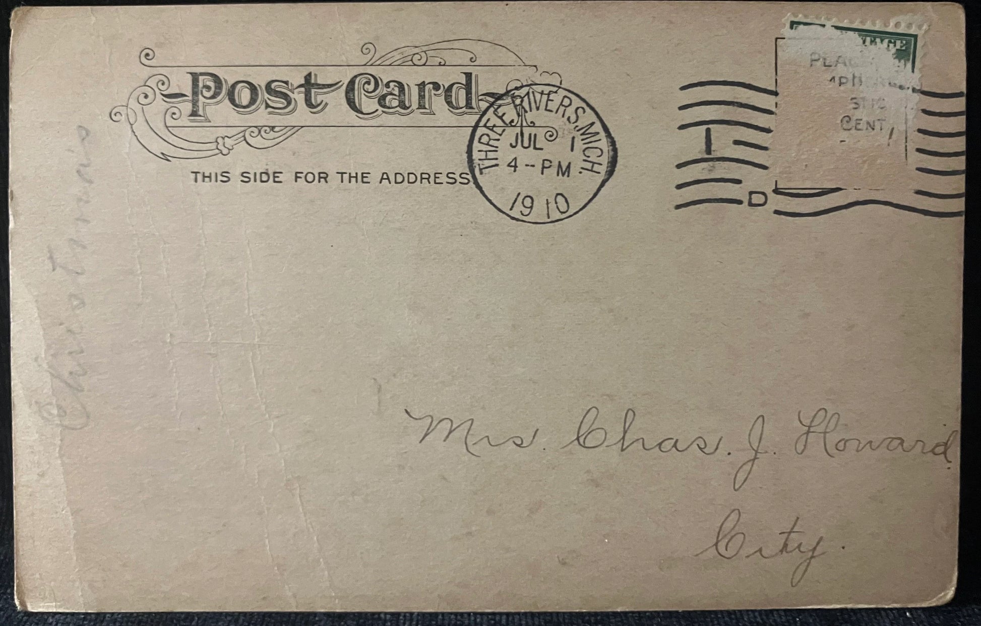 Mailed: Postmark on Jul 1, 1910 from Three Rivers, Mich. with stamp removed