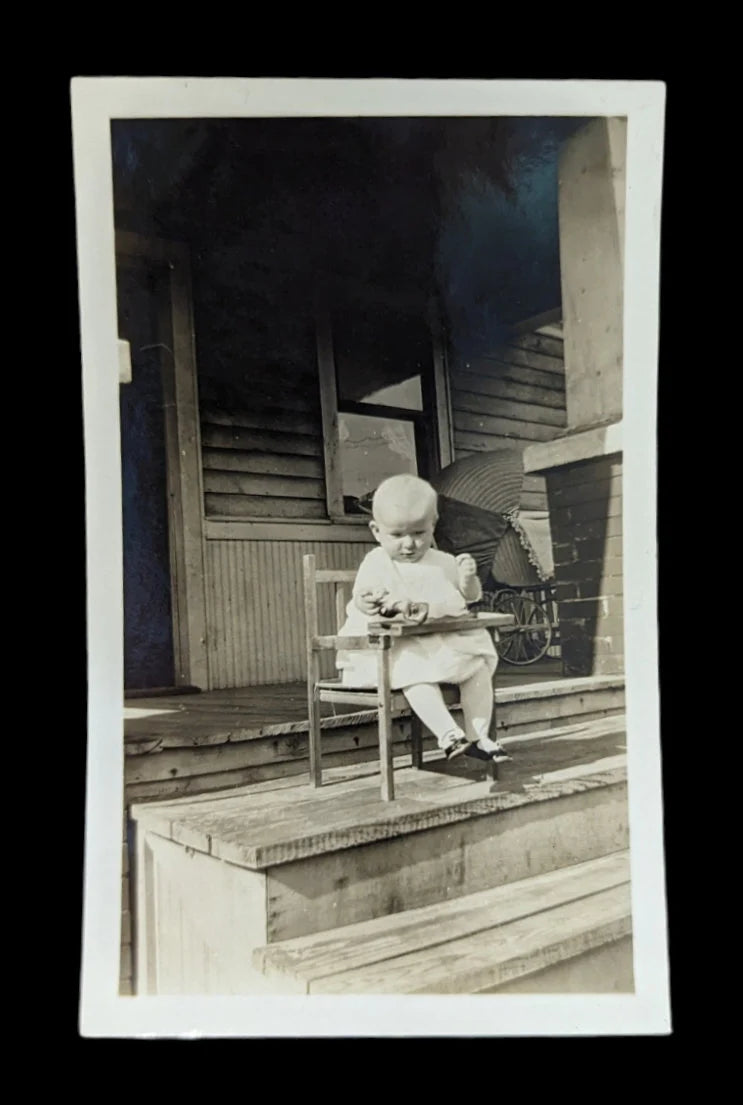 Set of 1920 Photos - Baby on the Porch - Precarious Positions - Happy and Pensive