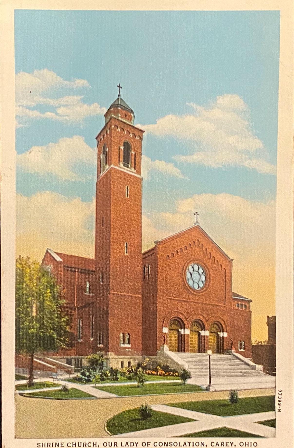 Front: Shrine Church, Our Lady of Consolation, Carey, Ohio - 1940s Postcard