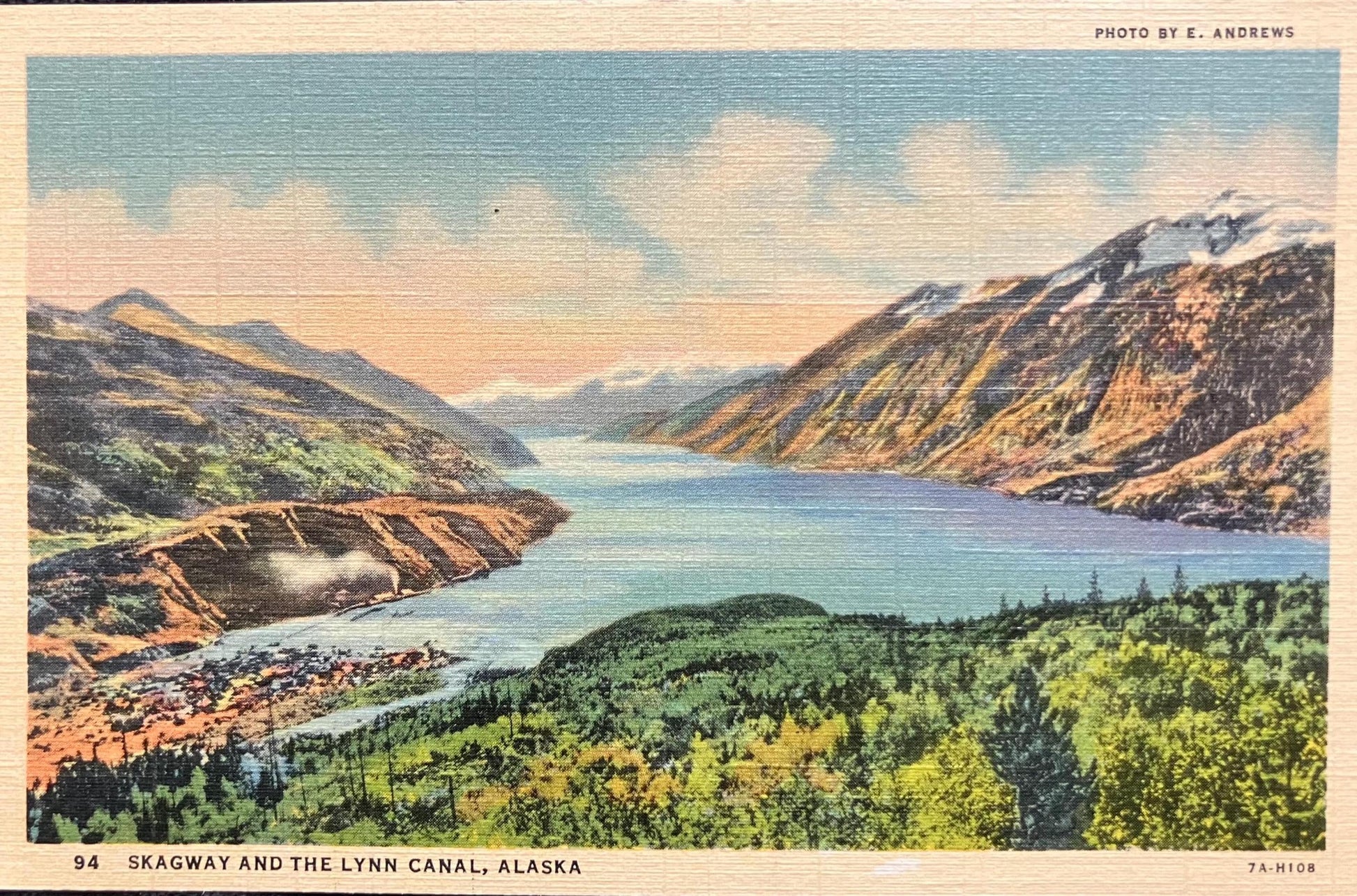 Skagway - Lynn Canal - Alaska - Photo: E. Andrews - 1940s Linen Postcard