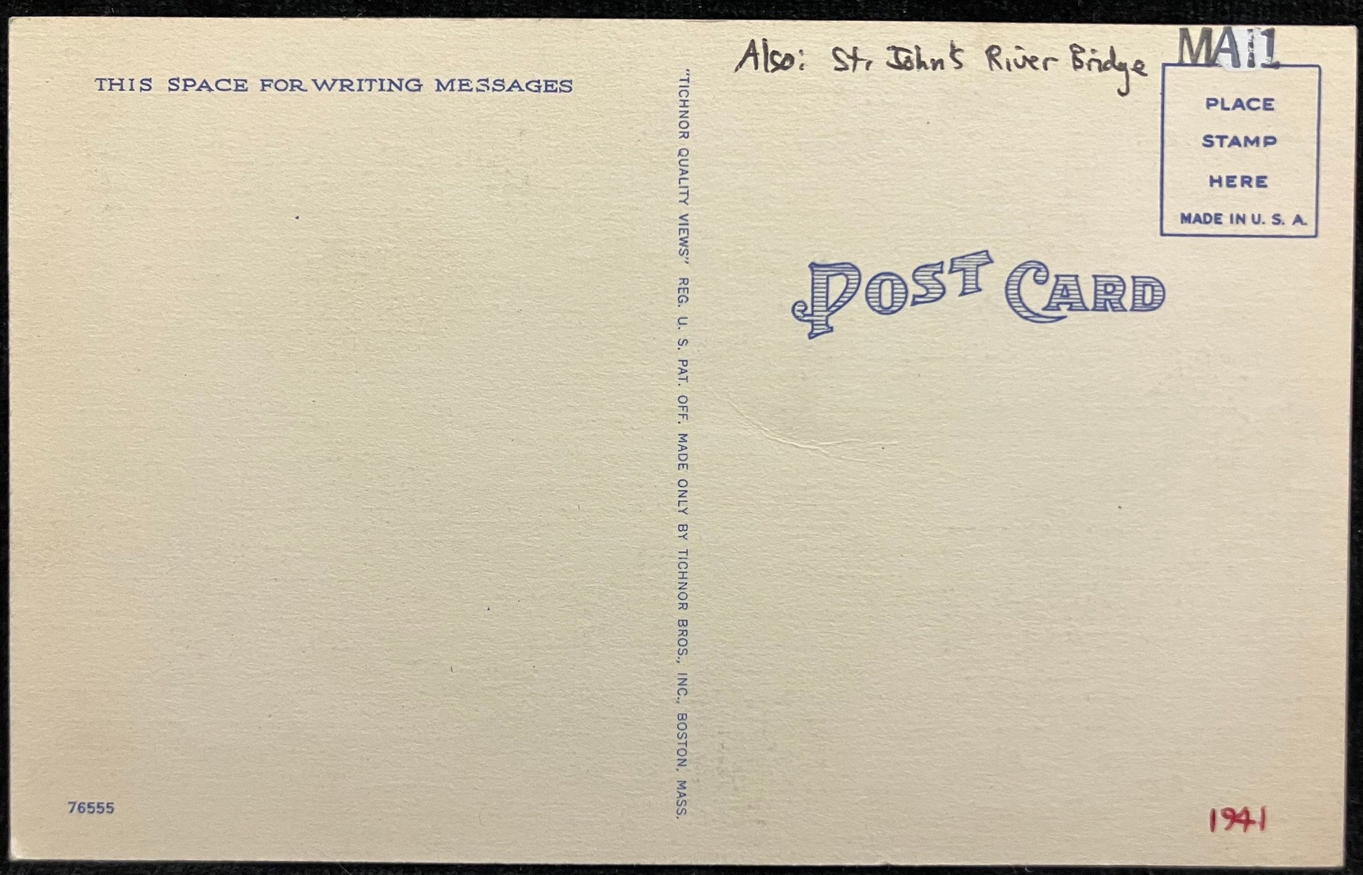On front: Skyline and Main Street Bridge, Jacksonville, Florida
