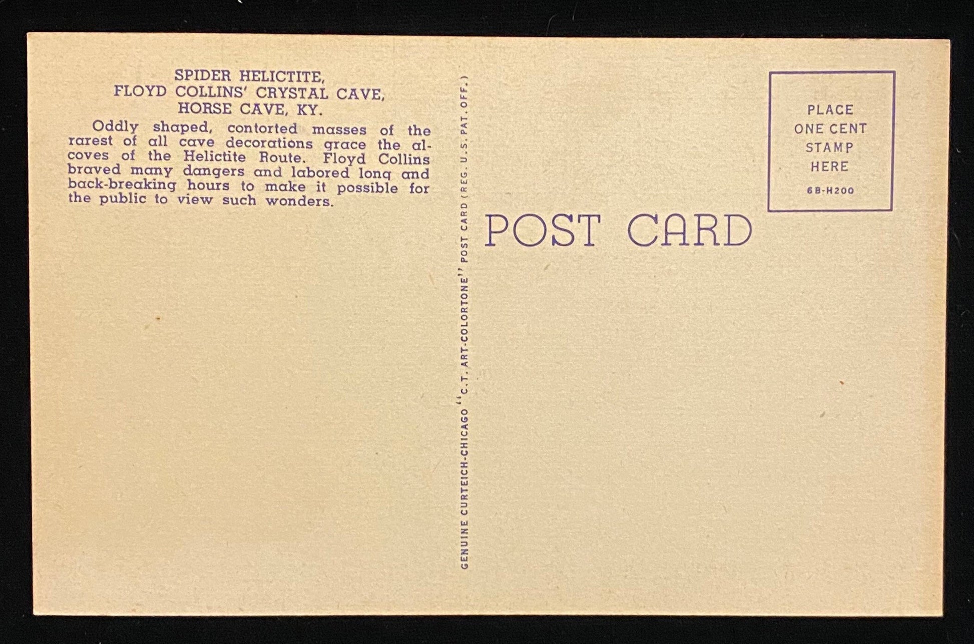 Front: Spider Helictite, Floyd Collins' Crystal Cave, Horse Cave, Ky. - 1946 Linen Postcard