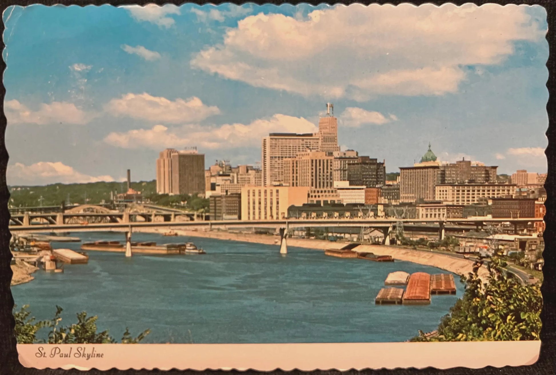 St. Paul Skyline, Minnesota - Vintage Bridge Postcard