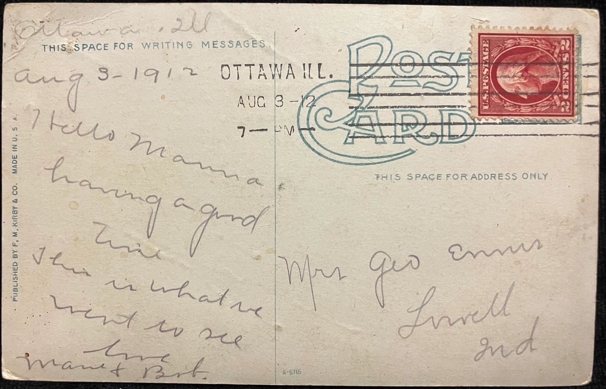 Mailed: Postmark 1912, red two cent George Washington stamp