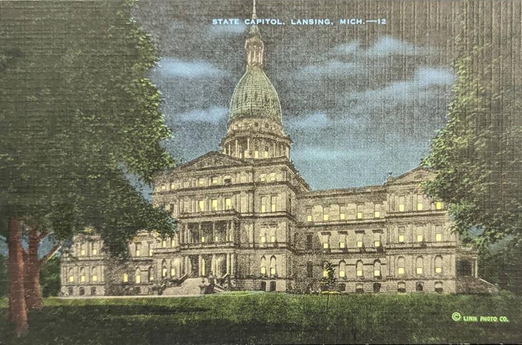 State Capitol - Lansing, Michigan - 1940s Linen Postcard