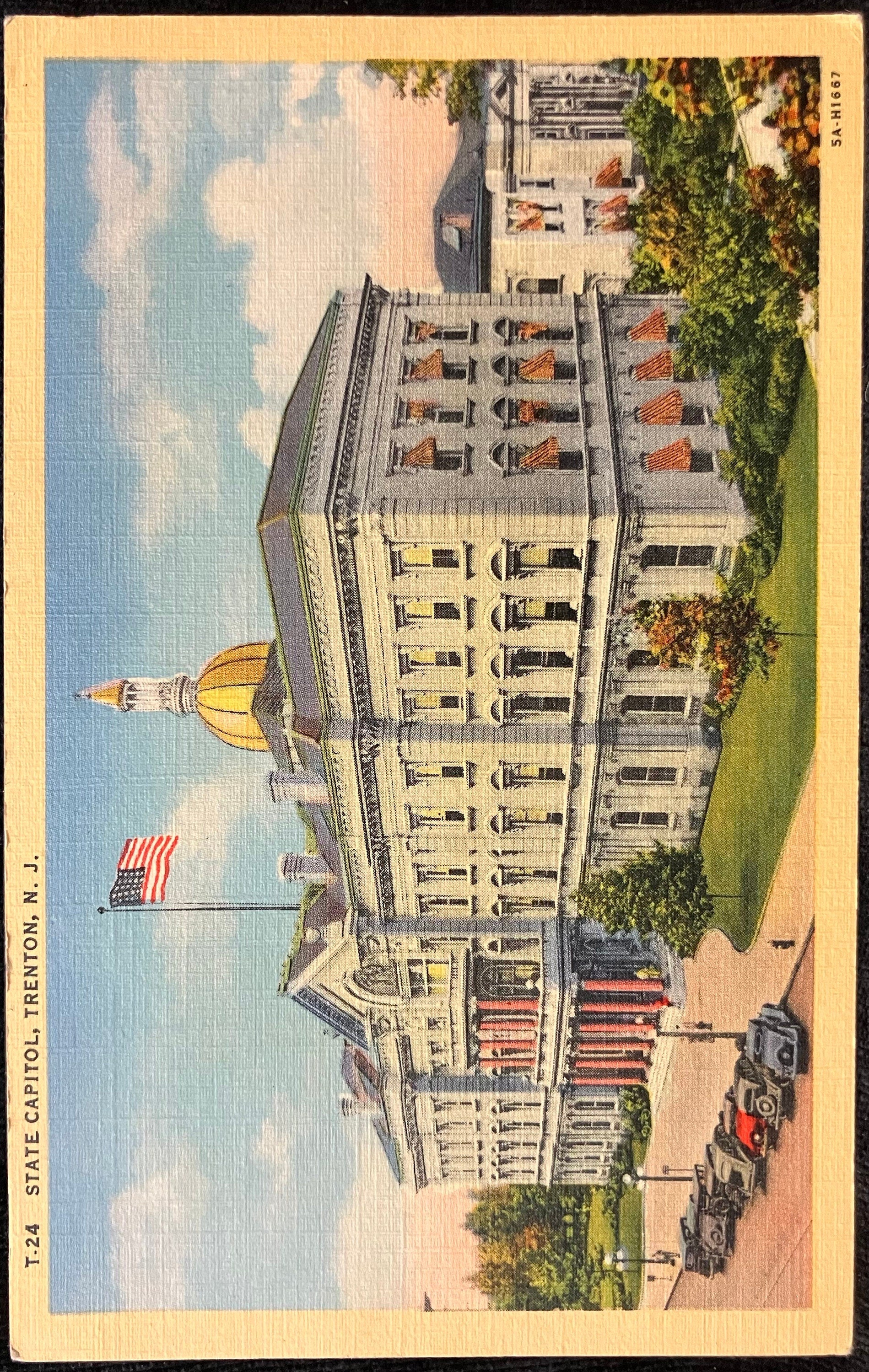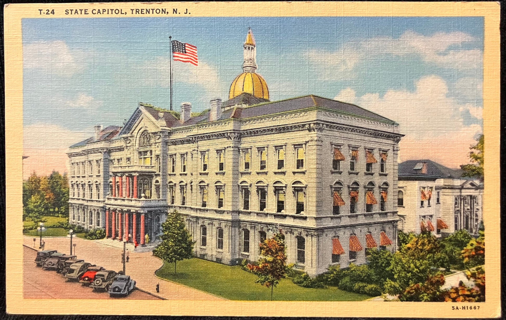 State Capitol, Trenton, New Jersey - Vintage Capitol Postcard - 1930s automobiles in front of the Capital