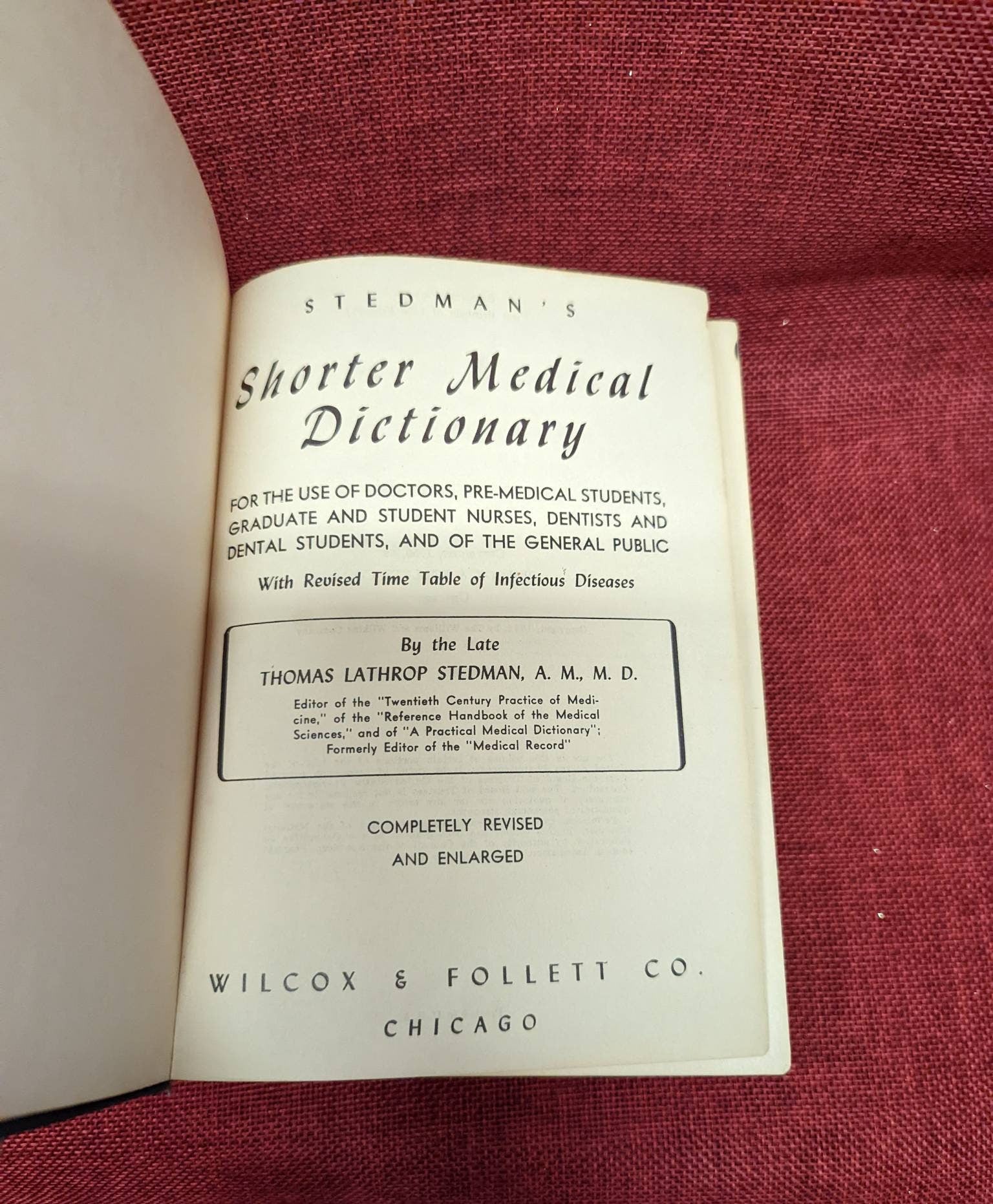 Thomas Lathrop Stedman, author, Steadman's Shorter Medical Dictionary, Copyright 1950 Wilcox & Follett Co.