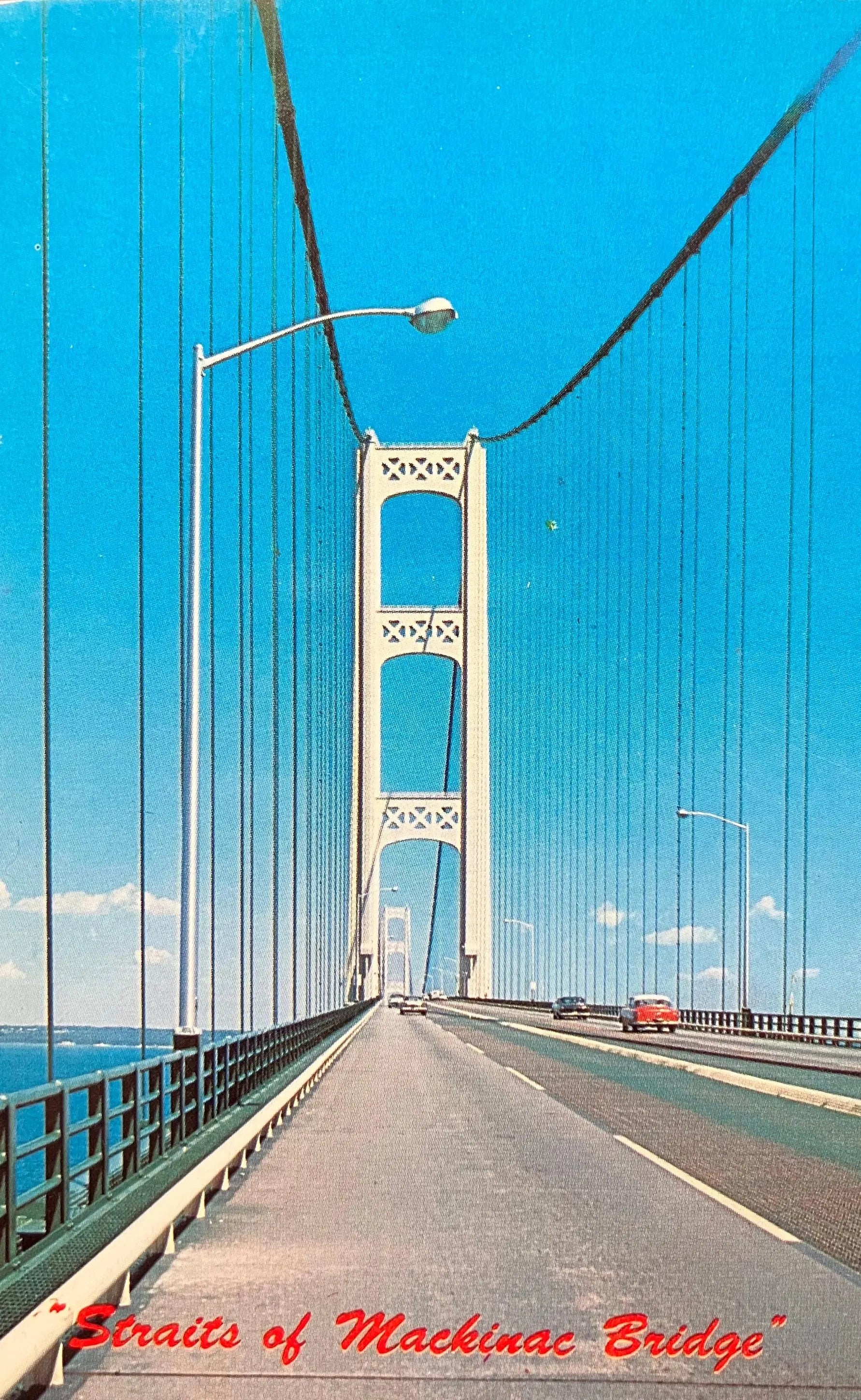 Straits of Mackinac Bridge, Michigan - Vintage Bridge Postcard