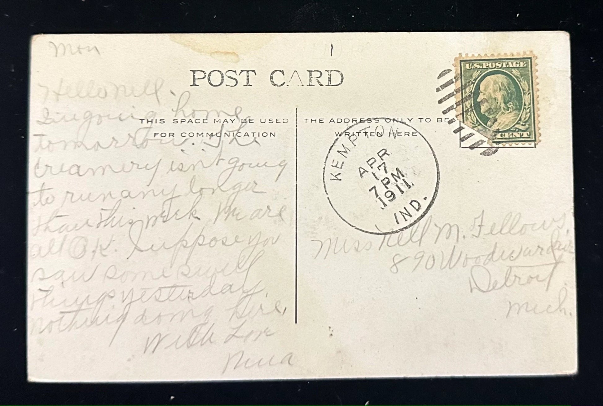Mailed- Posted on April 17th, 1911 - Green Ben Franklin 1 cent stamp - From Kempton