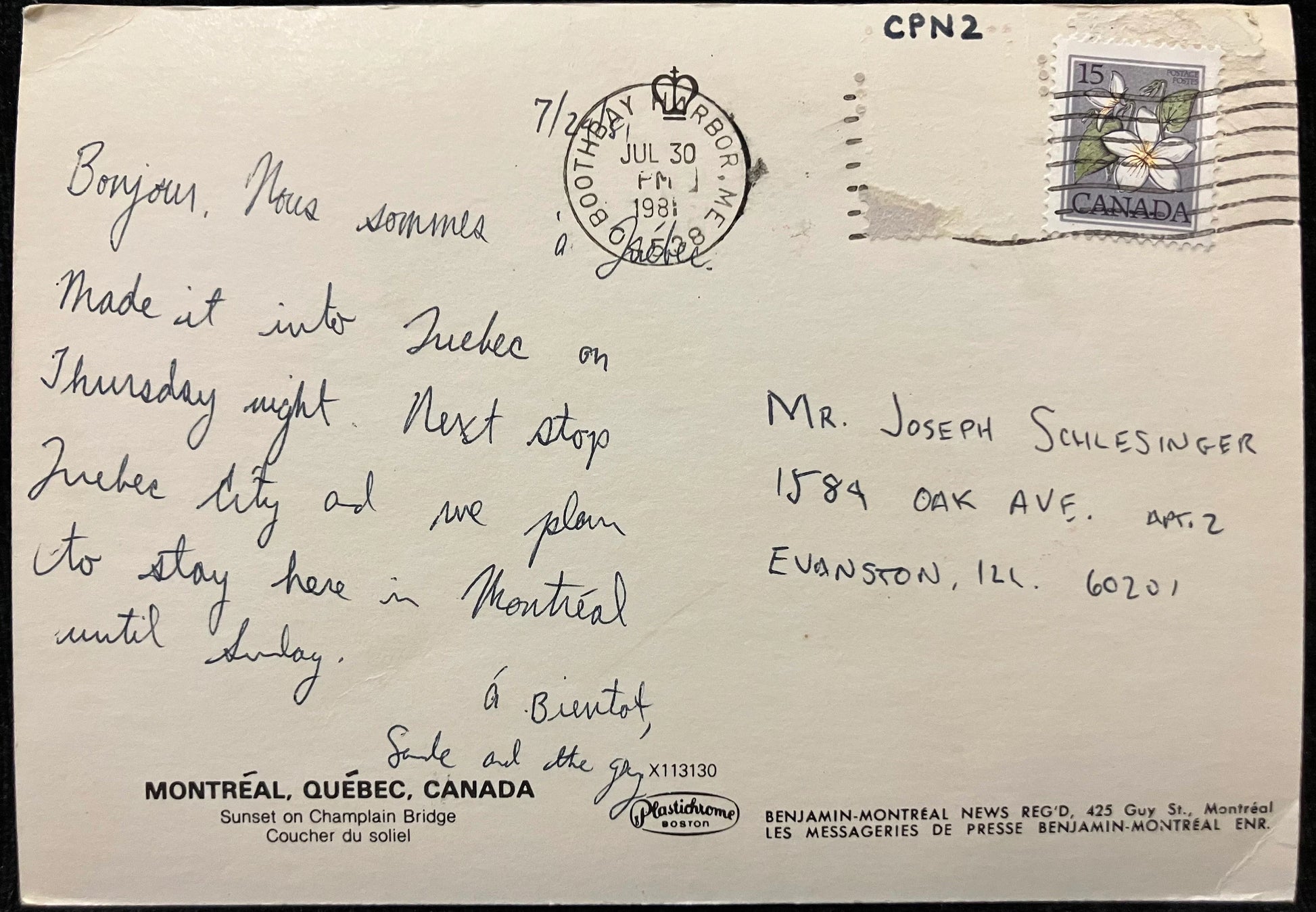 Mailed: Postmark on July 30, 1981 from Boothbath Harbor, ME with a fifteen cent Canada stamp