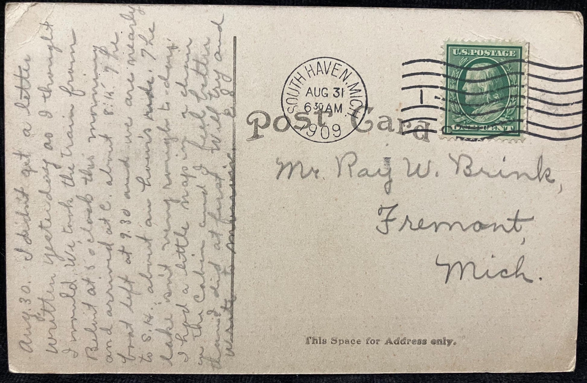 Mailed: Postmark: 1909 green one cent Benjamin Franklin stamp