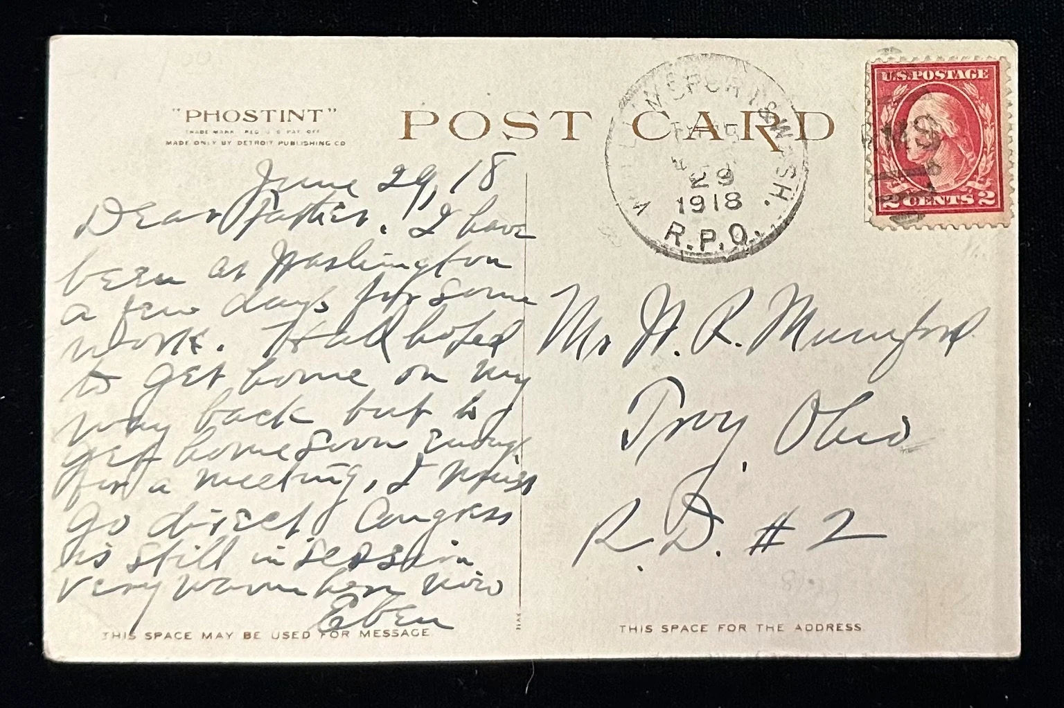 Mailed: Postmark: 1918 Carmine George Washington stamp
