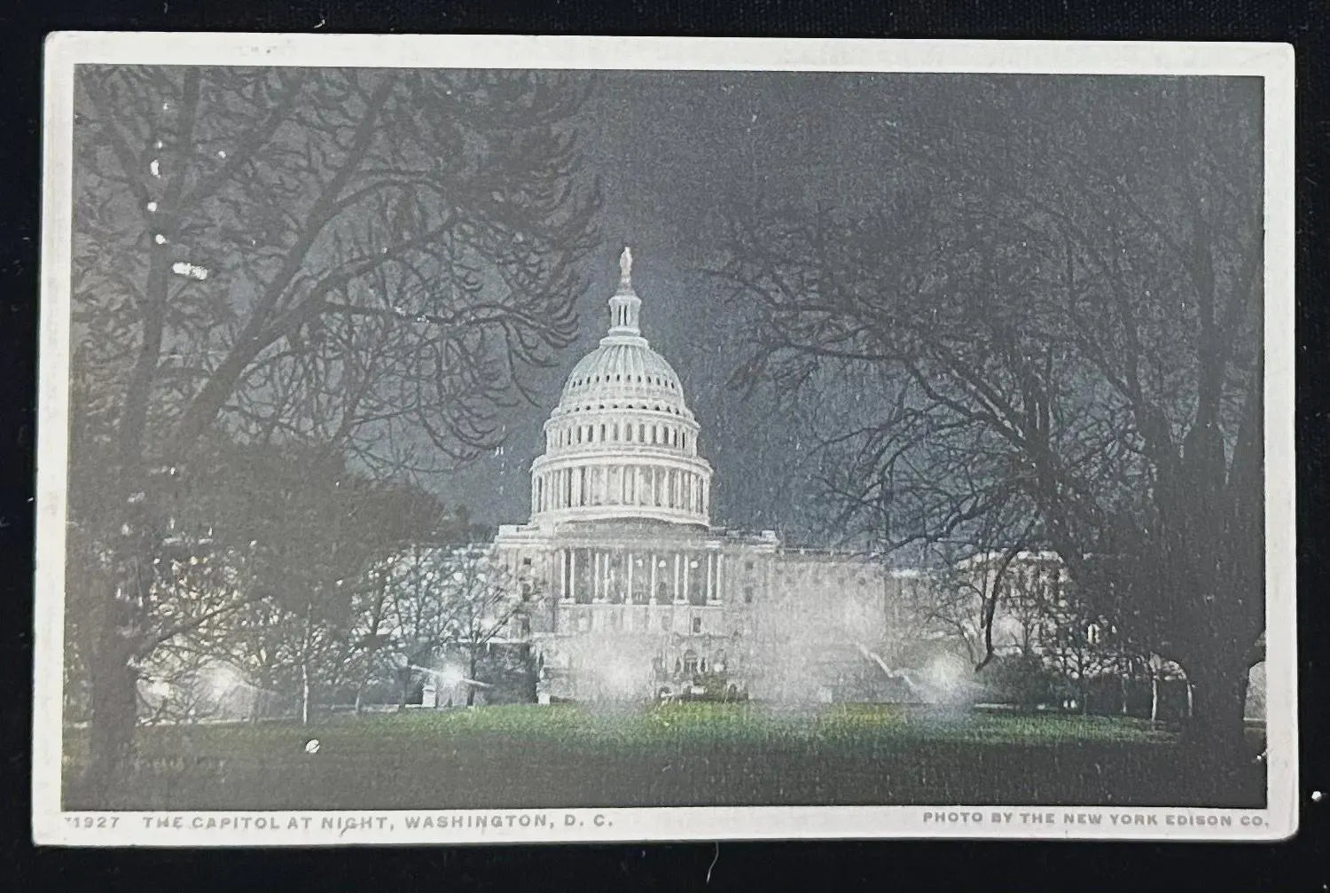 The Capitol at Night, Washington, D.C., Maryland - Vintage 1910s Postcard