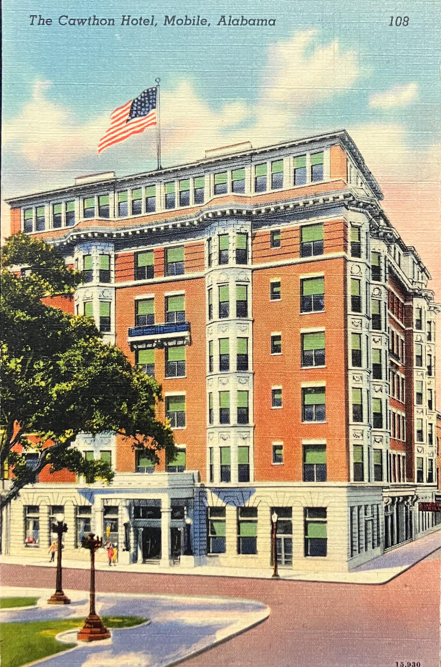 The Cawthon Hotel - Mobile, Alabama - 1940s Linen Postcard