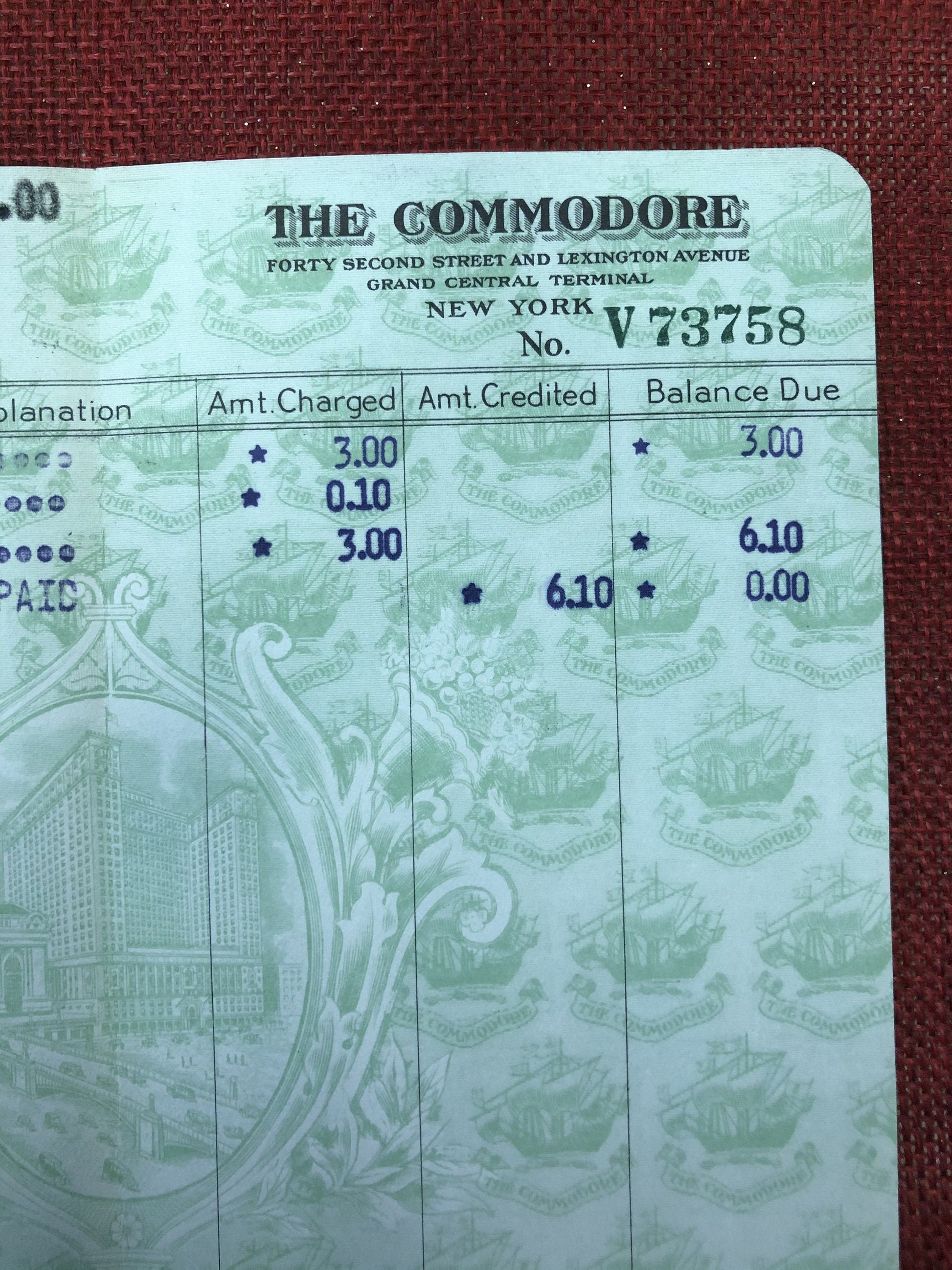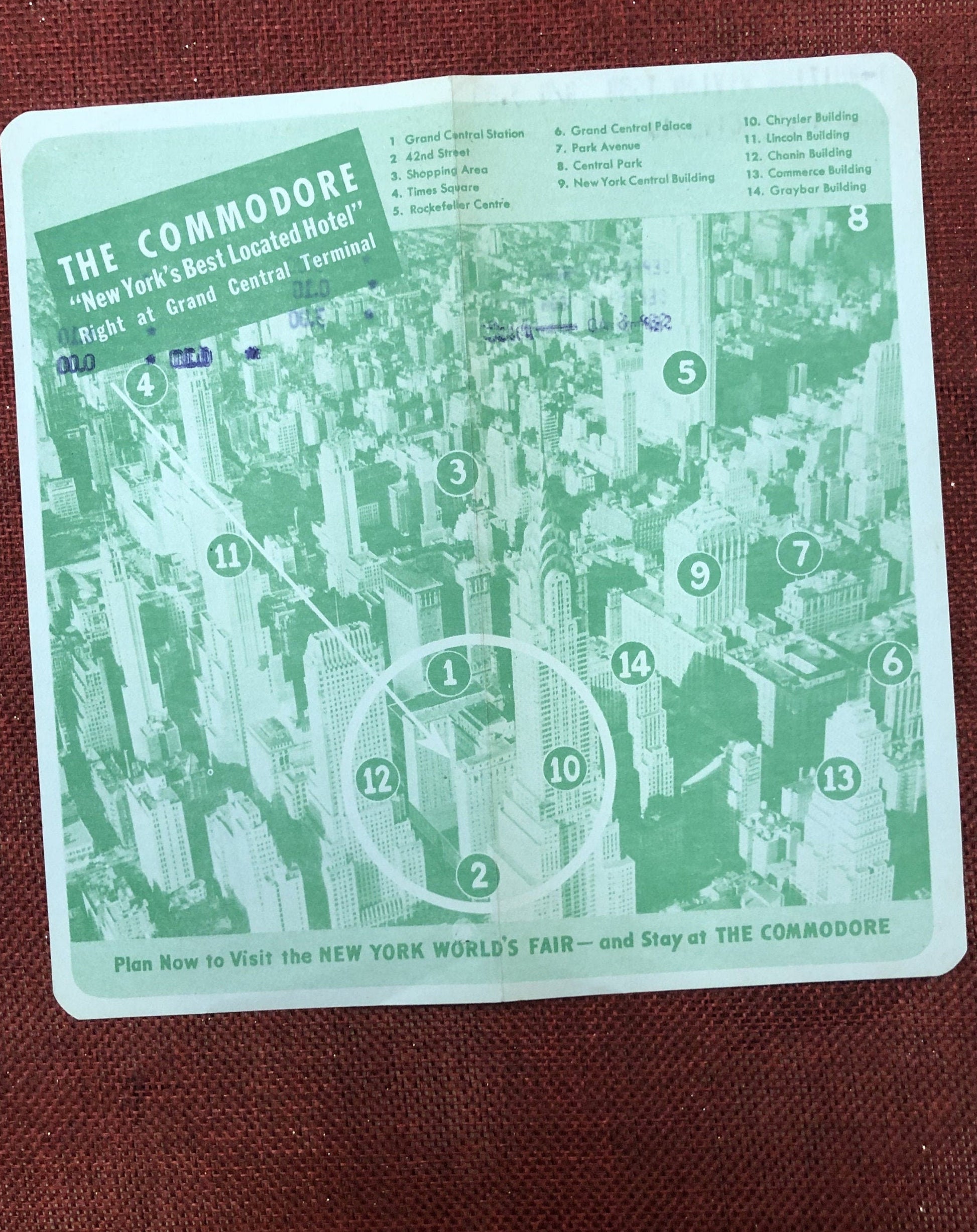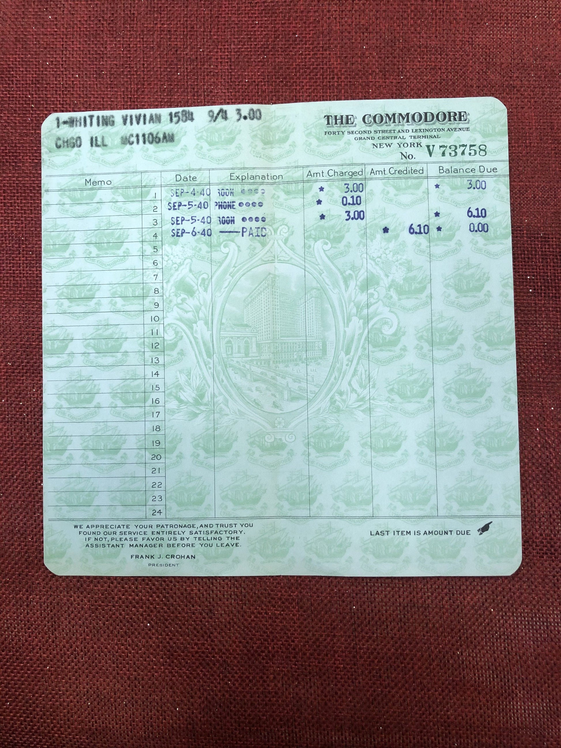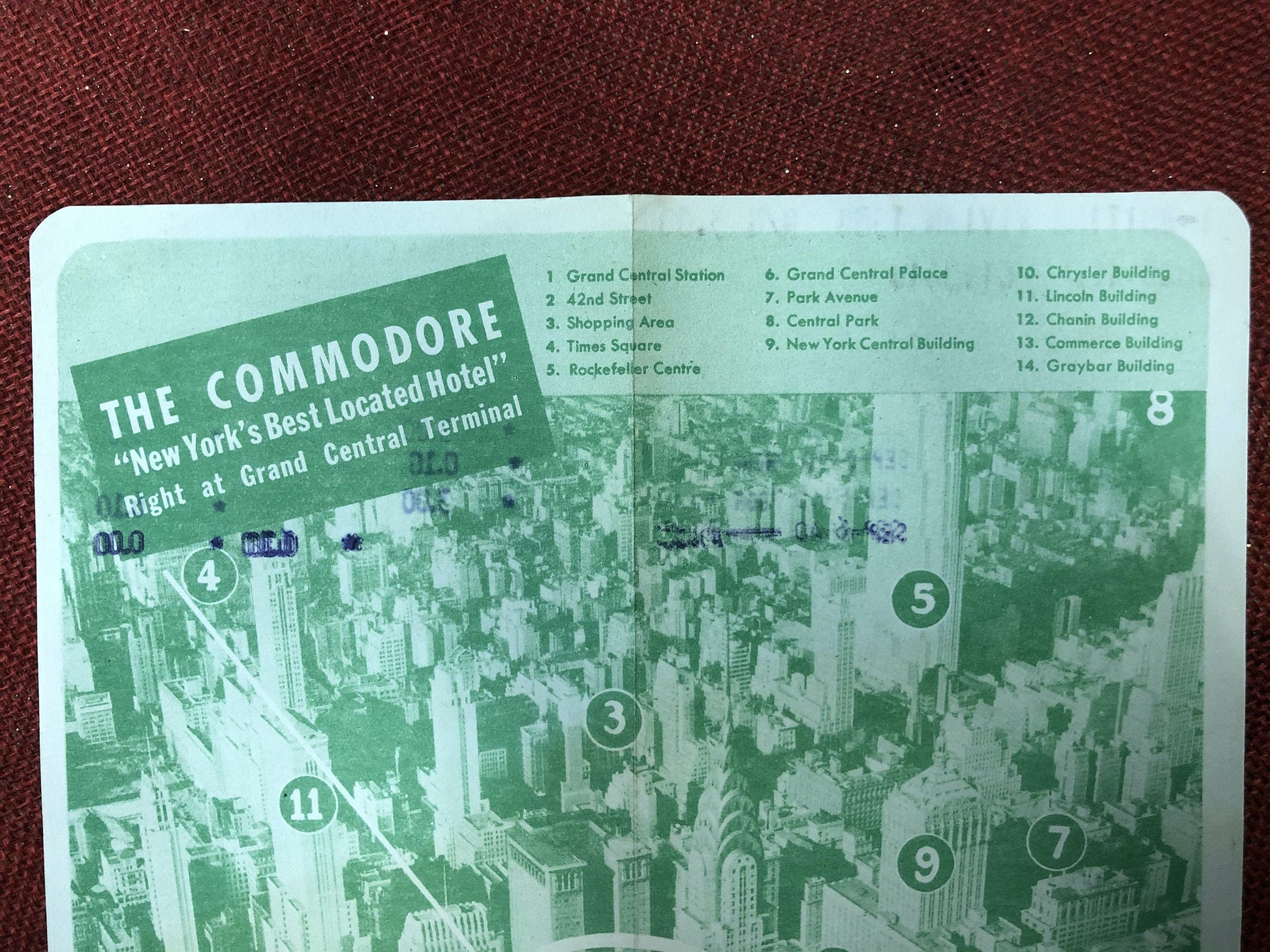 The Commodore Hotel train pass from 1940. This New York Commodore Hotel collectible belonged to a woman named Vivian Whiting. Perfect for those who love to collect memorabilia from New York.