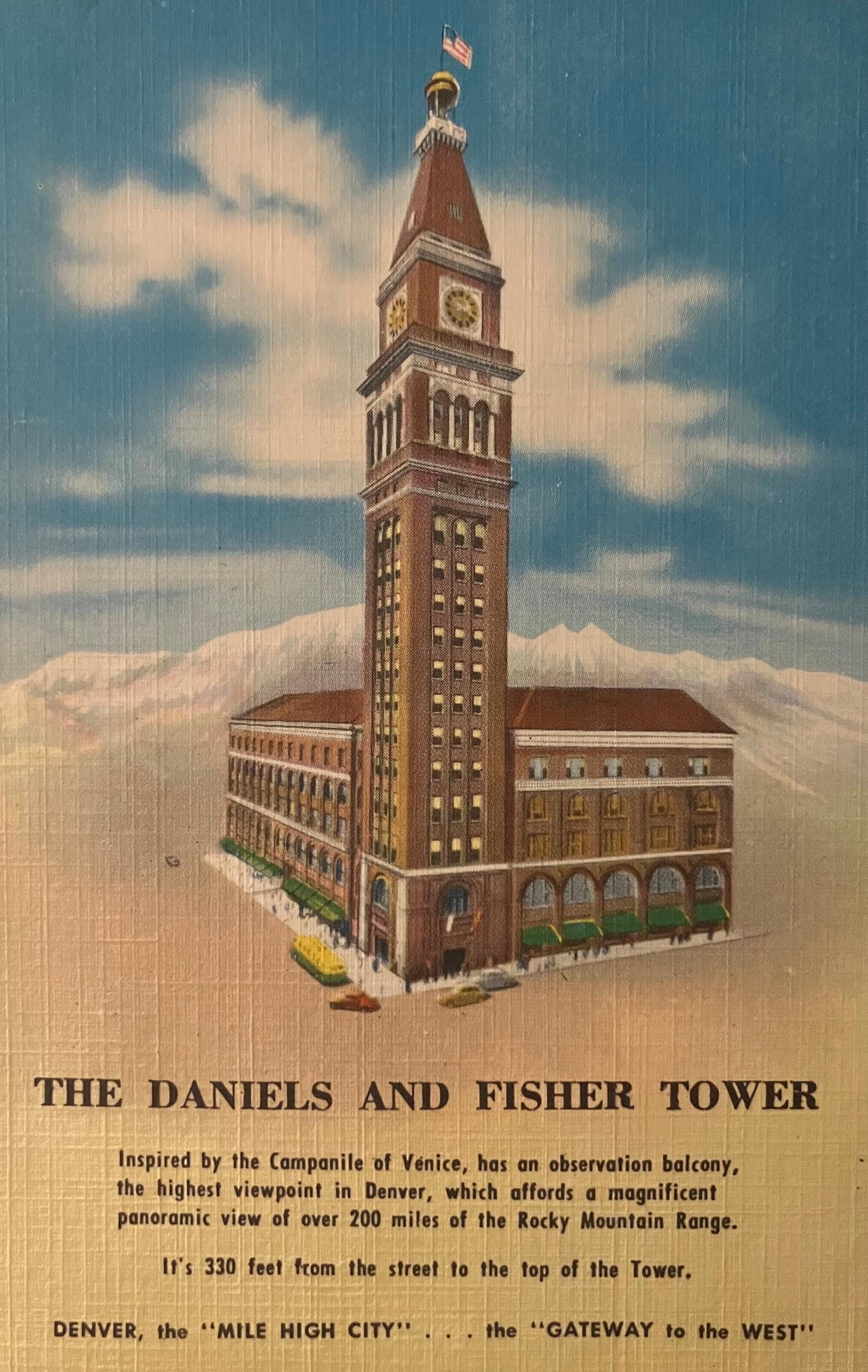 The Daniels and Fisher Tower - Denver, the "Mile High City" ... the "Gateway to the West" - Vintage Postcard