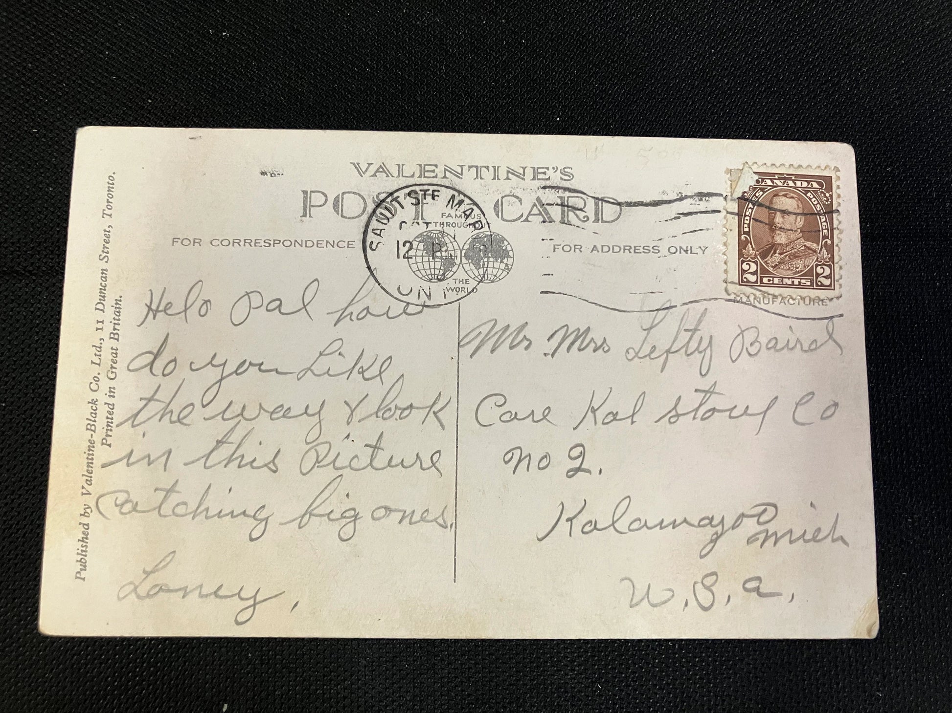 Mailed: Posted in Oct. 12, from Sault StE. Marie, Canada. with a brown 2 cent stamp with original letter in pencil