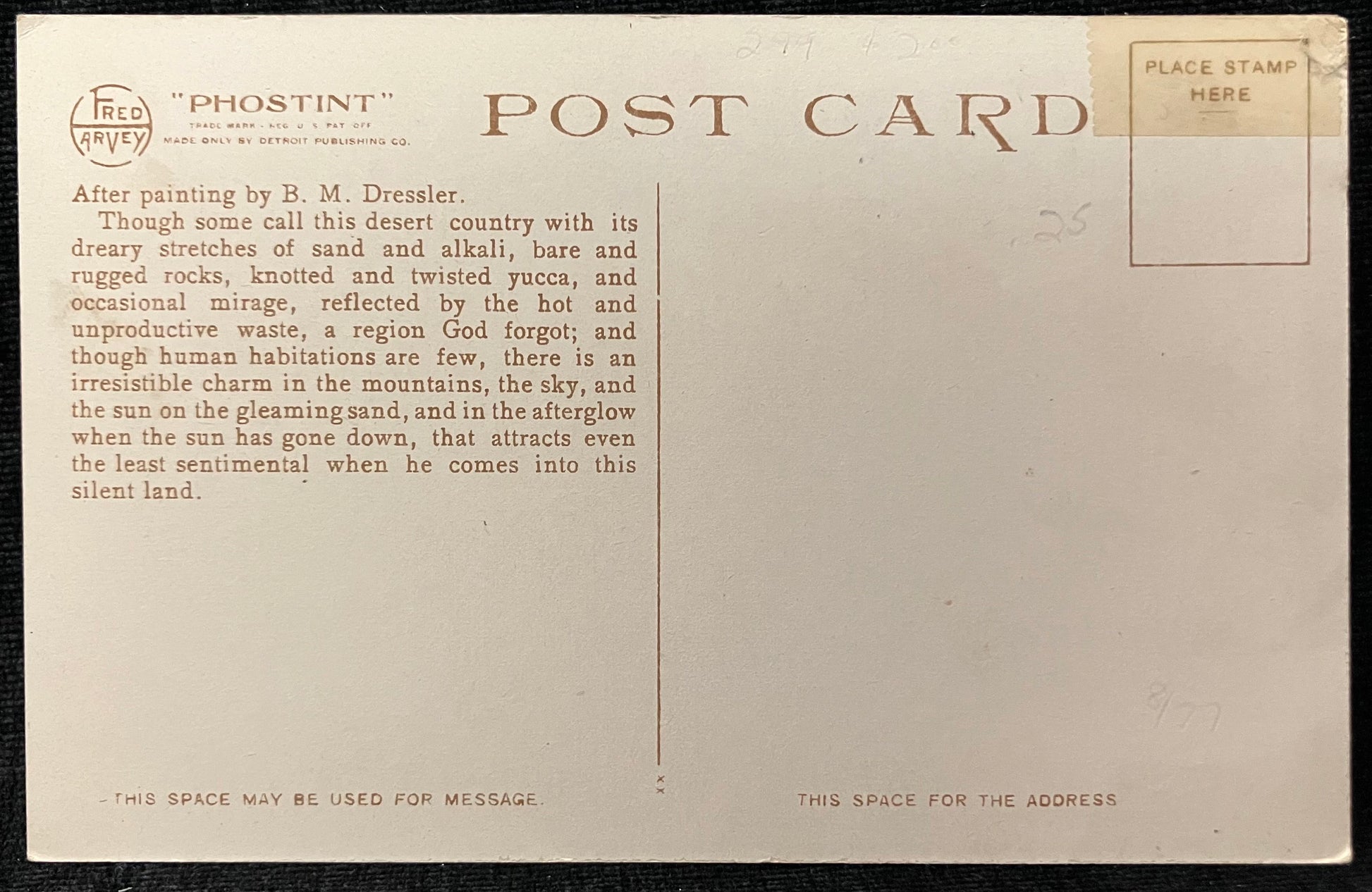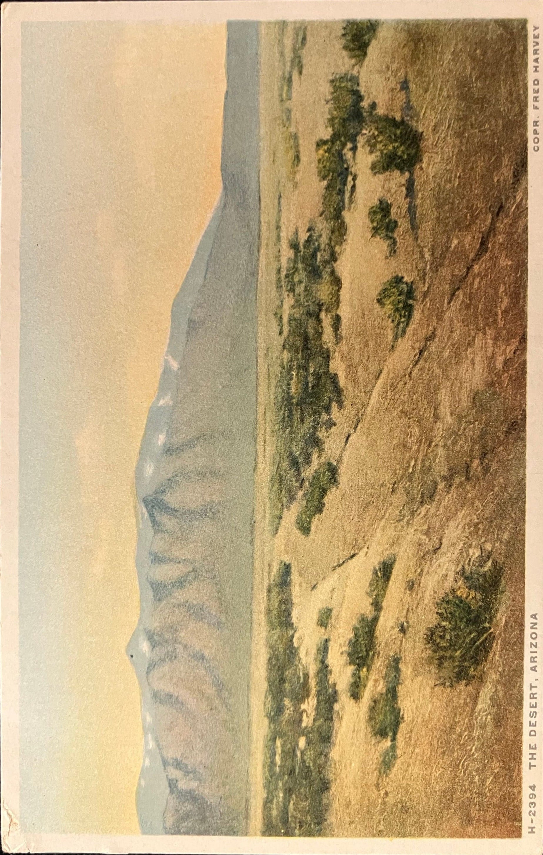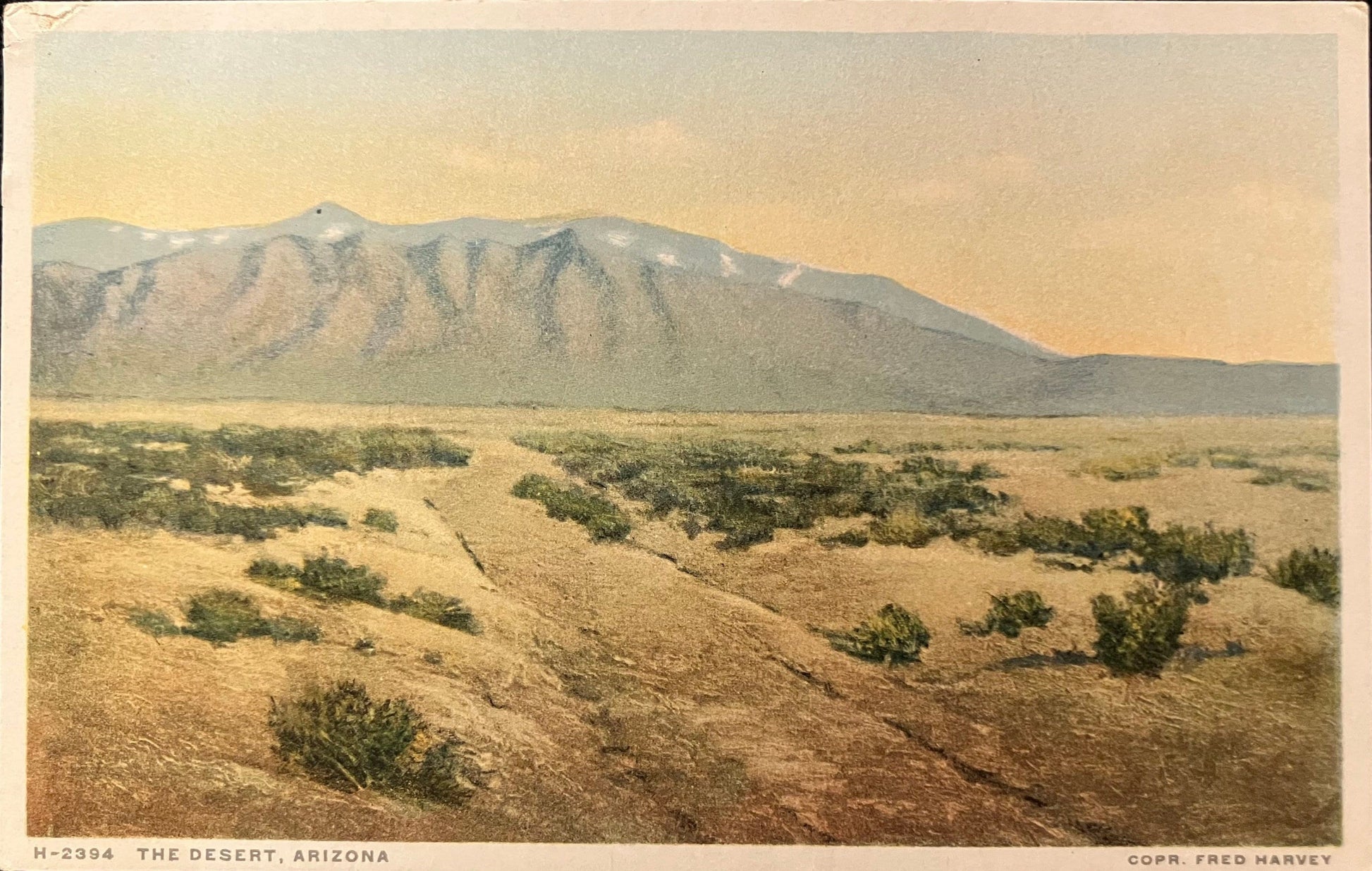 On front: “The Desert, Arizona. Copr. Fred Harvey”