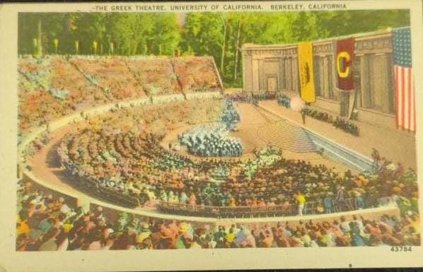 The Greek Threatre of University of California - Linen Postcard 1930s/40s