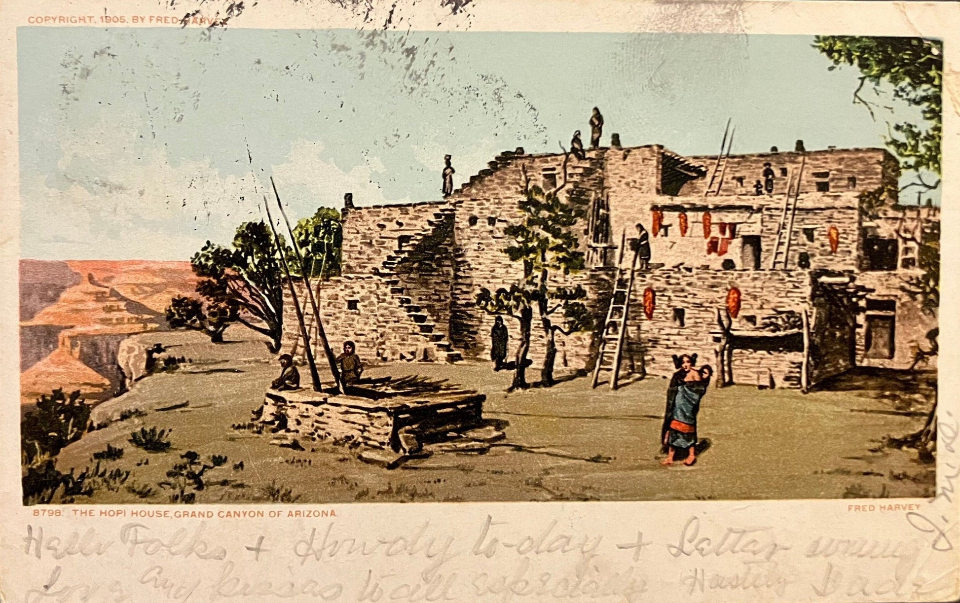 On front: “The Hopi House, Grand Canyon of Arizona. Copyright, 1905, by Fred Harvey”