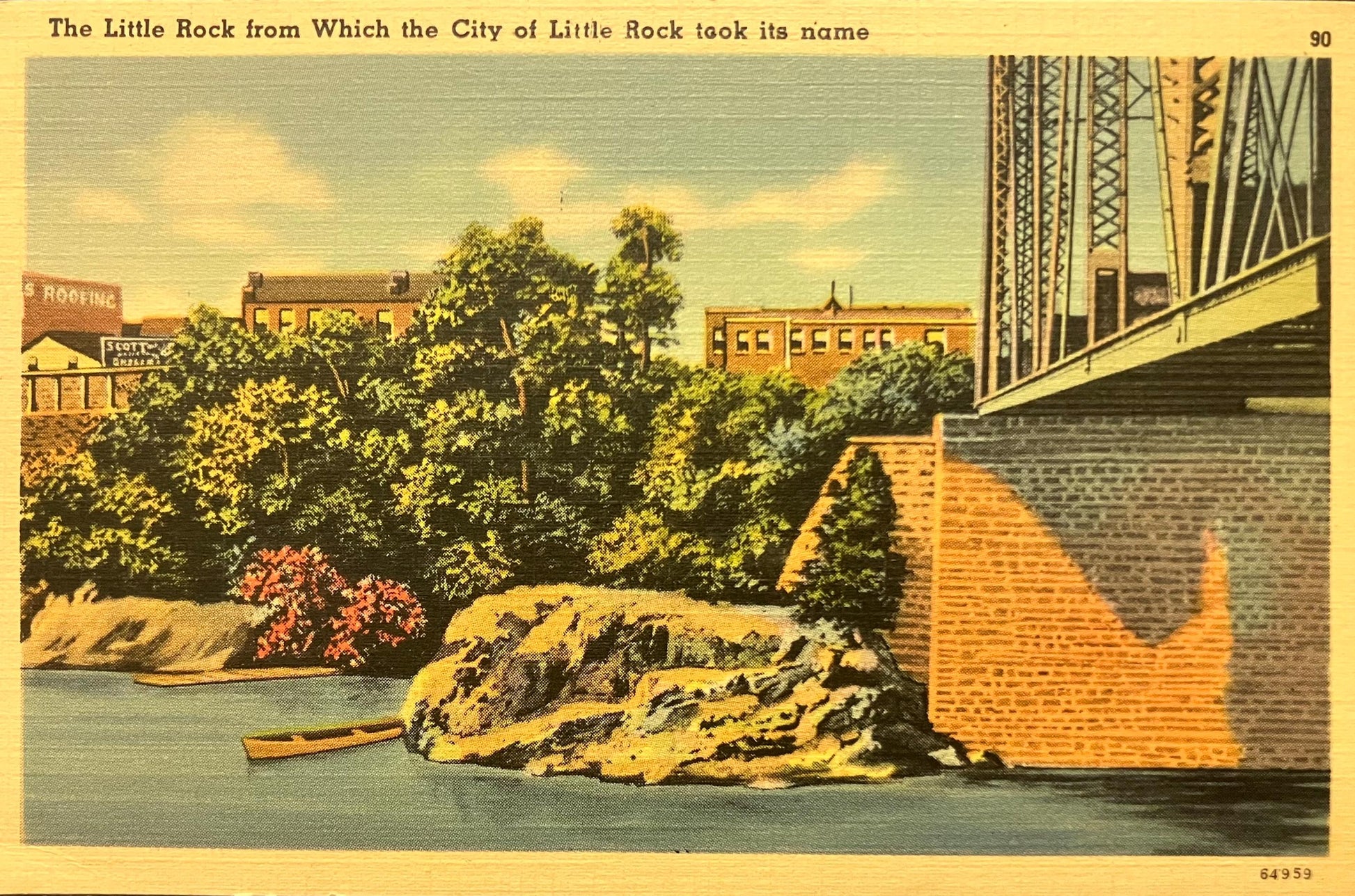 The Little Rock from Which the City of Little Rock took its name - Arkansas - 1940s Linen Postcard