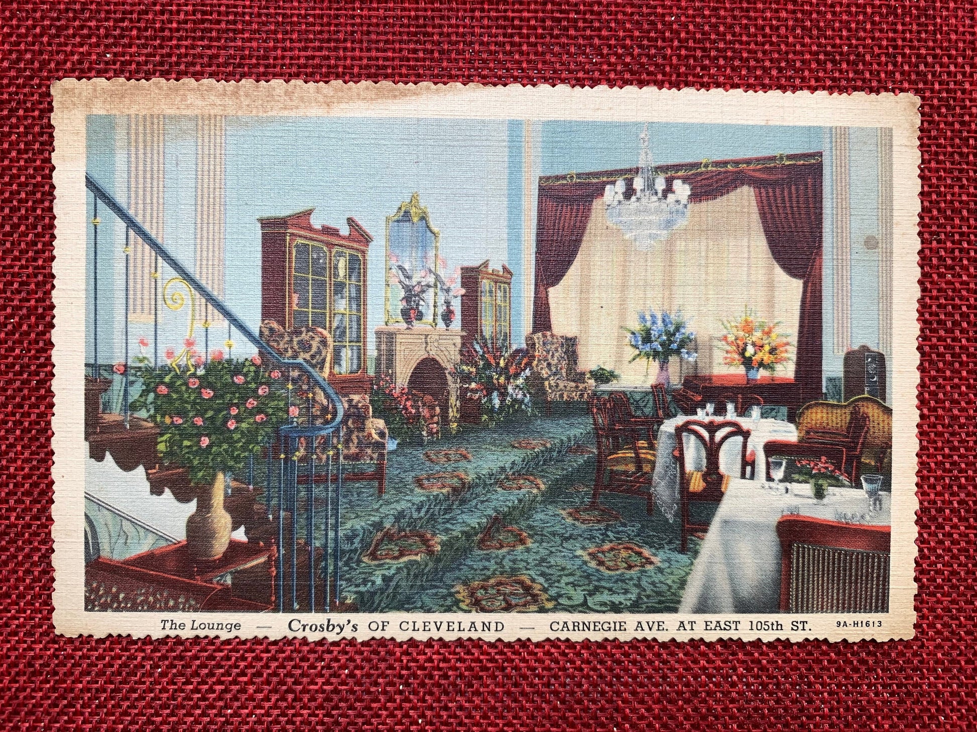 The Lounge, Crosby's of Cleveland, Ohio - Vintage Linen Postcard With Scalloped Edges 1940s