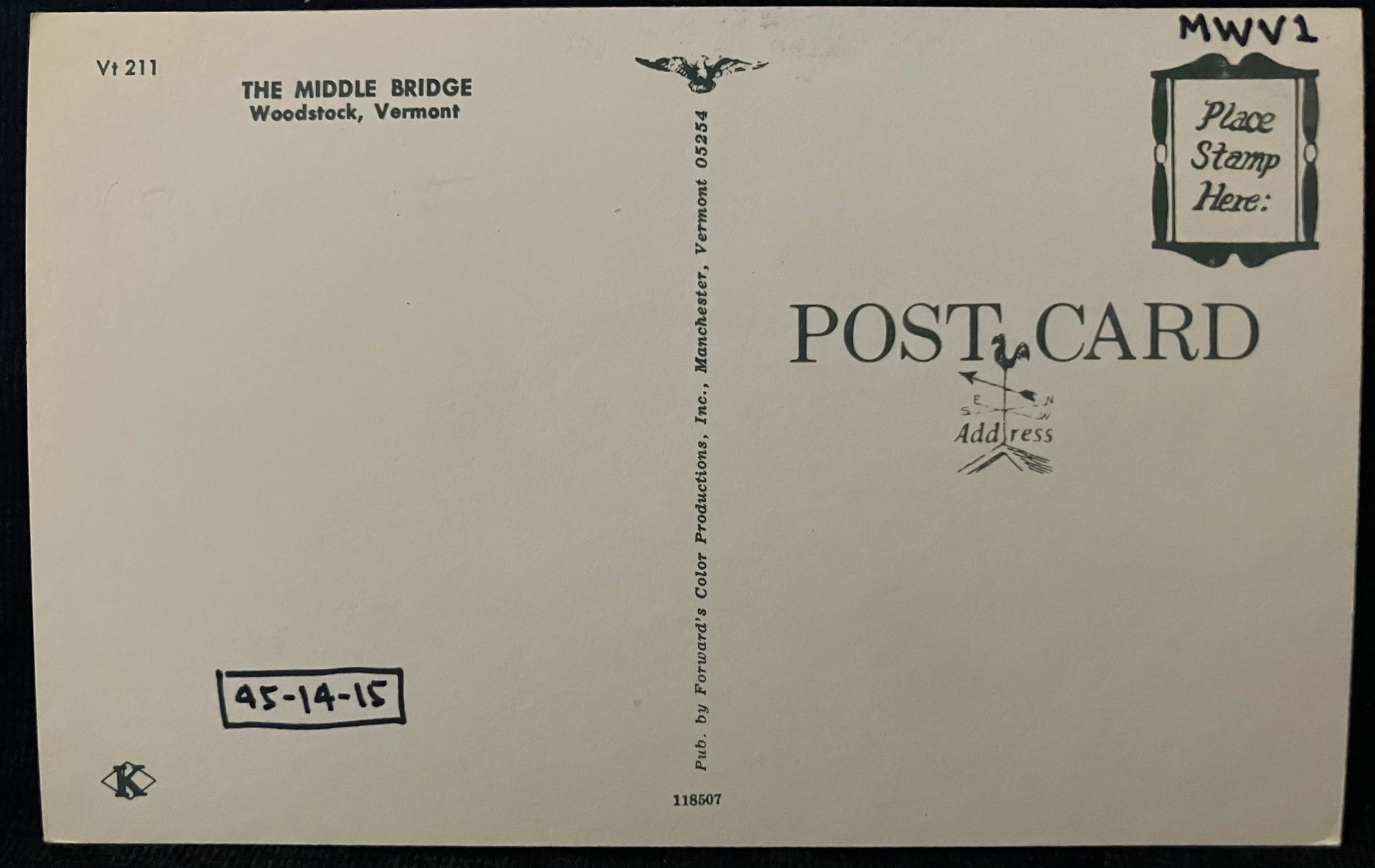 The Middle Bridge in Woodstock, Vermont - Vintage Postcard